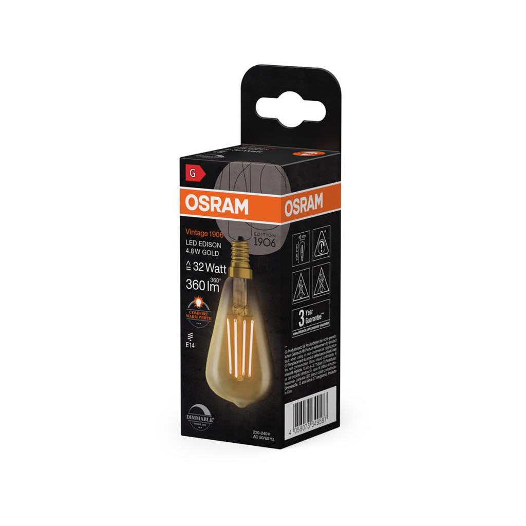 Osram Vintage 1906 Classic Edison E14 LED, 4,8 W, 360 lm, 2200 K, cu intensitate reglabilă