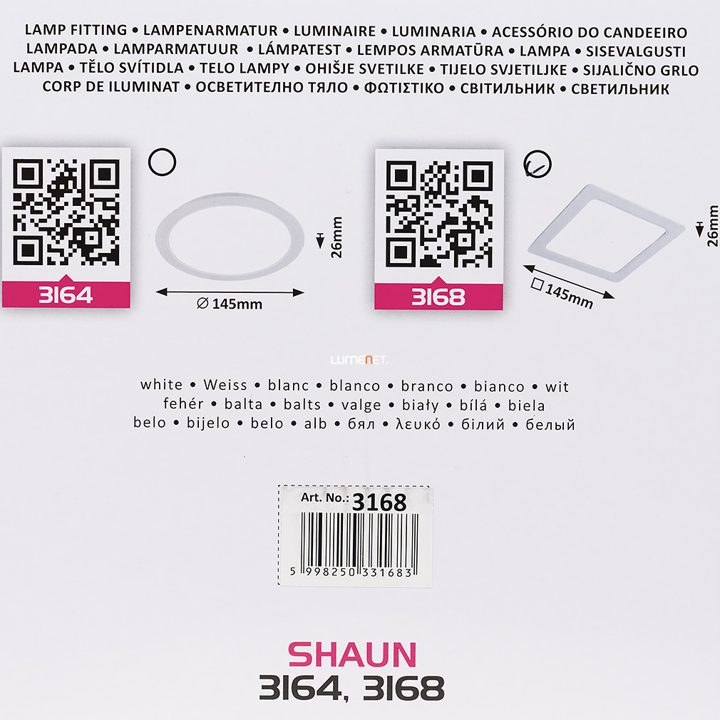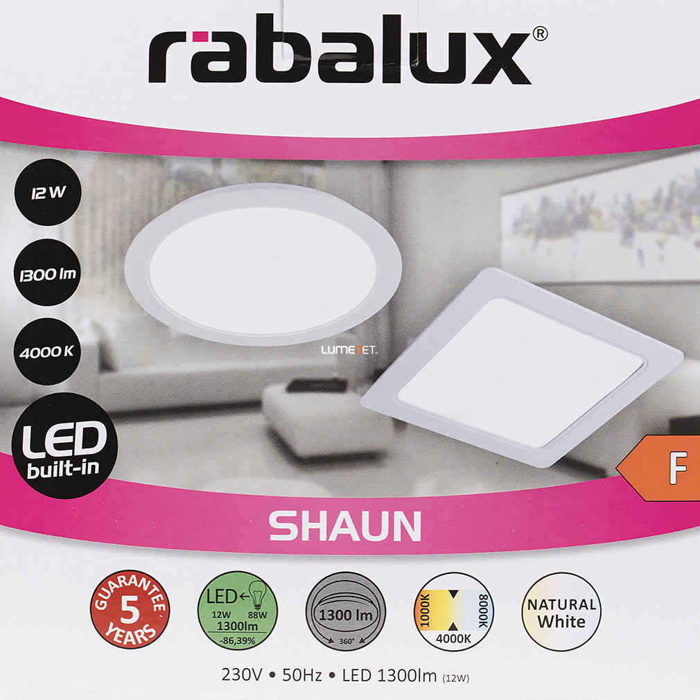 Panoul LED încastrat Shaun Rábalux 3168 este un corp de iluminat pătrat de 14,5 cm, proiectat într-un stil funcțional. Carcasa din plastic alb oferă protecție IP20, făcându-l potrivit pentru utilizare în interior. Panoul funcționează cu un modul LED încorporat de 12 wați, care oferă un flux luminos de 1300 lumeni cu o temperatură de culoare albă rece de 4000 K. Corpul de iluminat nu este reglabil, iar sursa de lumină nu poate fi înlocuită, deoarece conține un modul LED integrat. Panoul măsoară 145x145 mm și are o înălțime și o adâncime de instalare de 26 mm. Produsul cântărește 0,18 kg și are dimensiuni de ambalare de 15x15x4 cm. Panoul LED Shaun Rábalux 3168 este ideal pentru sarcini de iluminat general, unde aspectul modern și luminozitatea fiabilă sunt importante.