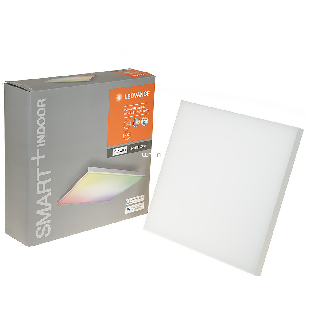 Panoul LED inteligent Ledvance Smart+ WIFI este un corp de iluminat modern, fără ramă, de 30x30 cm, care funcționează cu un modul LED de 20 W. Panoul are un flux luminos de 1500 lumeni, o temperatură de culoare care poate fi reglată între 3000 și 6500 Kelvin și poate fi setat și pe gama de culori RGB, oferind atât lumină albă variabilă, cât și lumină colorată. Corpul de iluminat este fabricat din aluminiu și plastic, are finisaj alb și protecție IP20. Iluminatul este controlat prin conexiune Wi-Fi folosind o aplicație mobilă, dar poate fi controlat și cu o telecomandă. Panoul LED are o durată de viață medie de 25.000 de ore, iar sursa sa de lumină este un modul LED integrat. Produsul cântărește 1,56 kg, are o înălțime de 69 mm și o lățime și lungime de 300 mm.