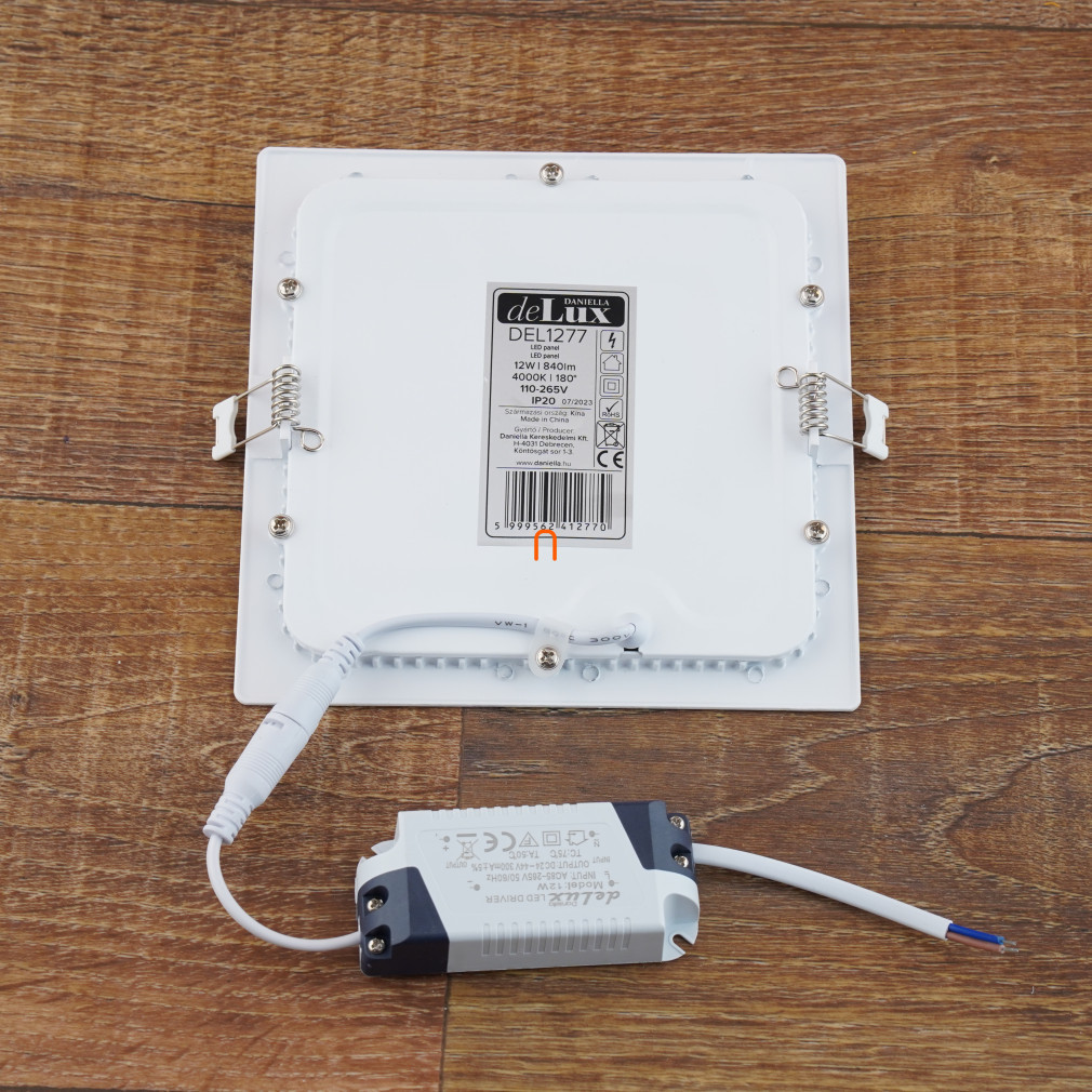 Panou LED, pătrat, încastrat, 12W, 840lm, 4000K, IP20 - deLux DEL1277
