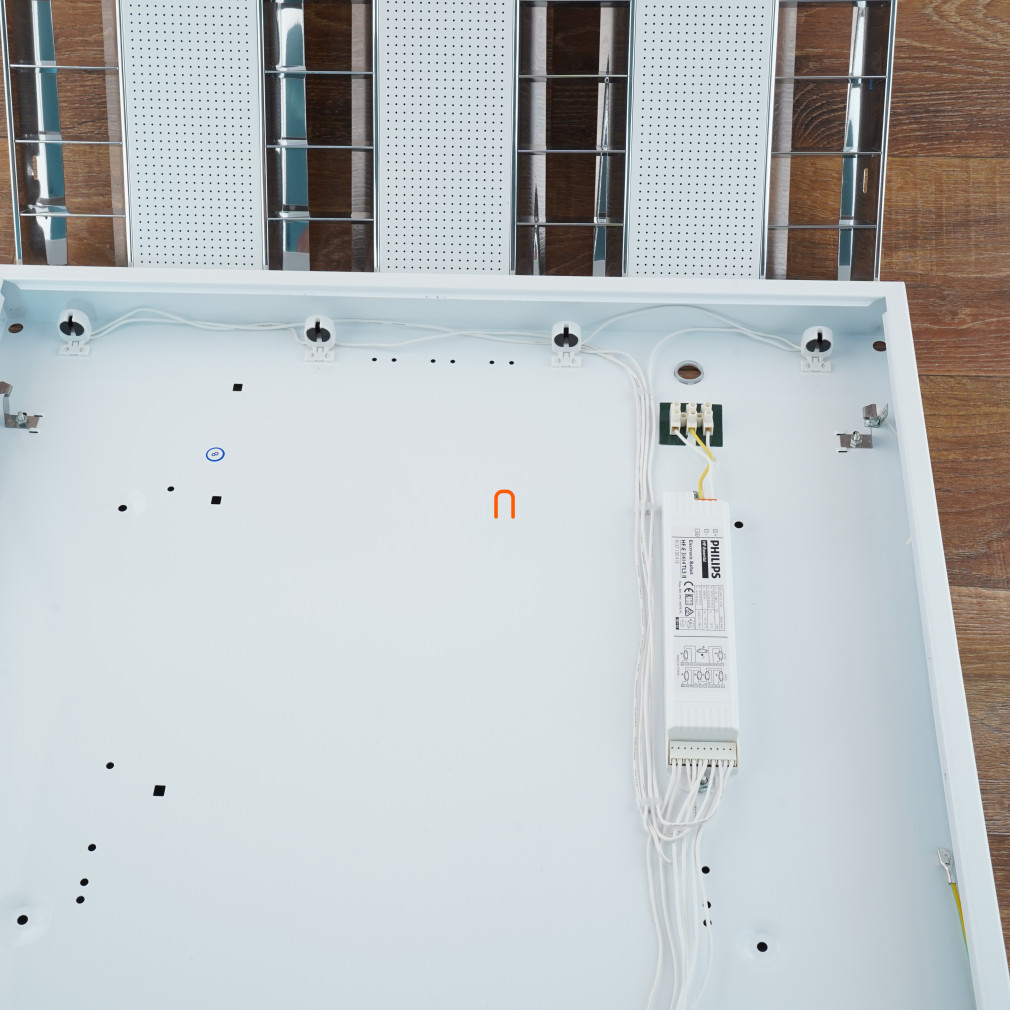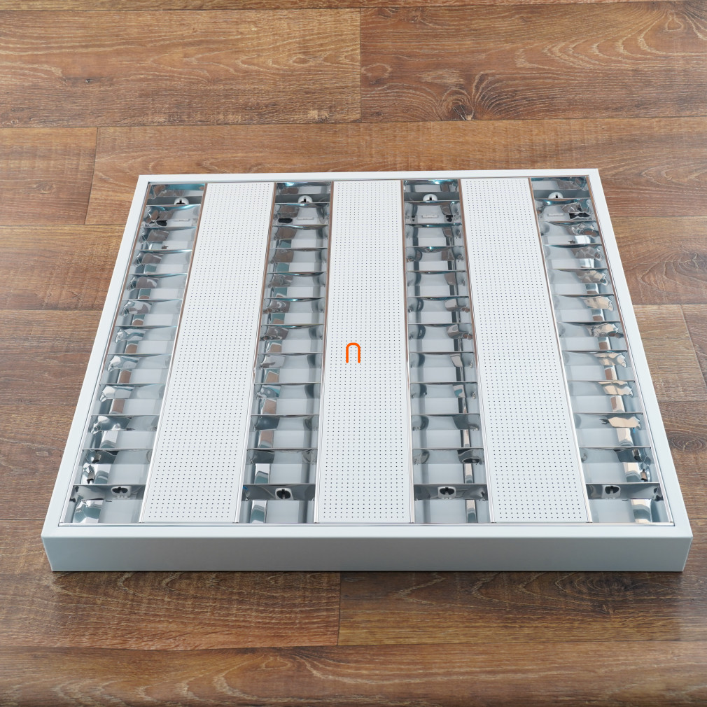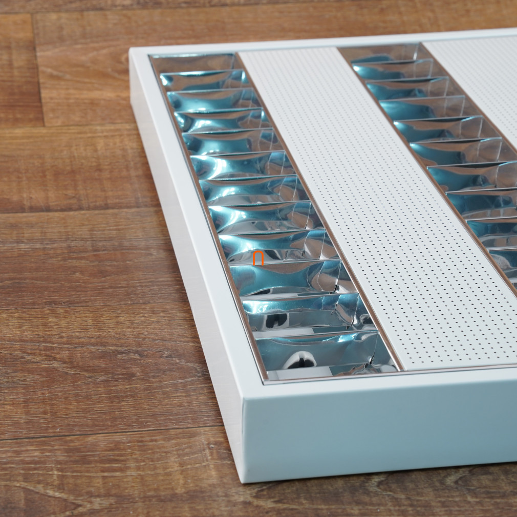 Perete exterior cu grilaj oglindit / corp de iluminat încastrat 4x14W T5 cu oglindă EVG DP și balast PHILIPS Smihe DEL1164