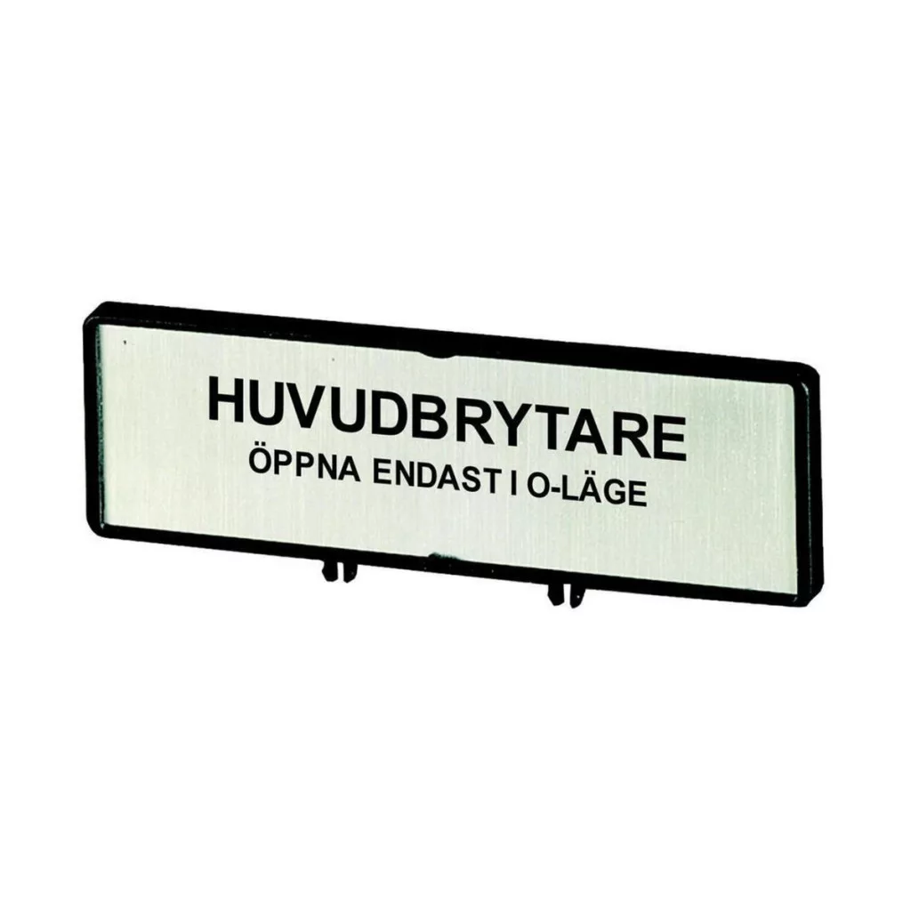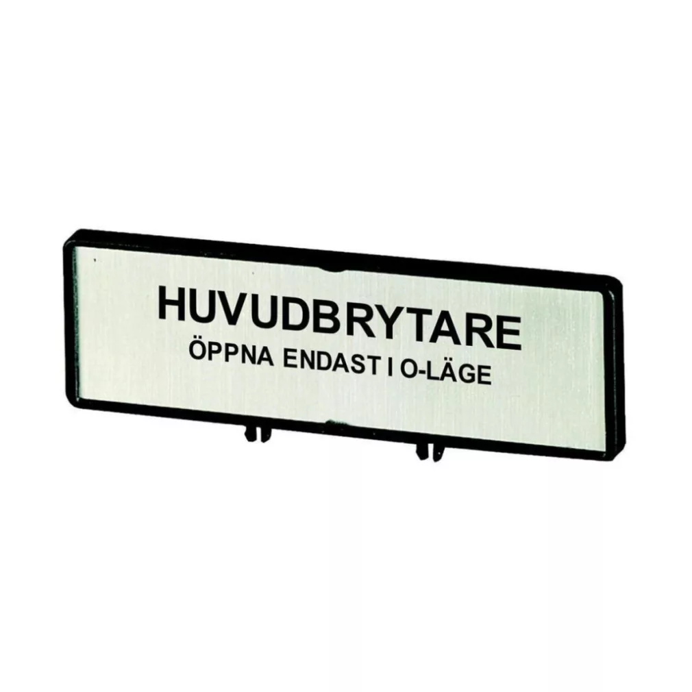 Plăcuță cu etichetă Eaton „întrerupător principal” suedeză /t0, t3, p1, zfs75-t0-205544