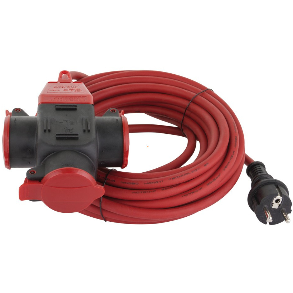 Prelungitor cu împământare, pentru exterior, cu 3 prize, 10 m H07RN-f 3x1,5