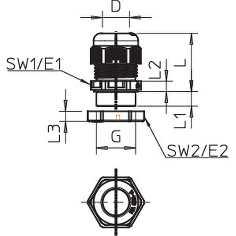 Dop de etanșare cu piuliță de blocare PG29, PA, gri deschis, 7035
