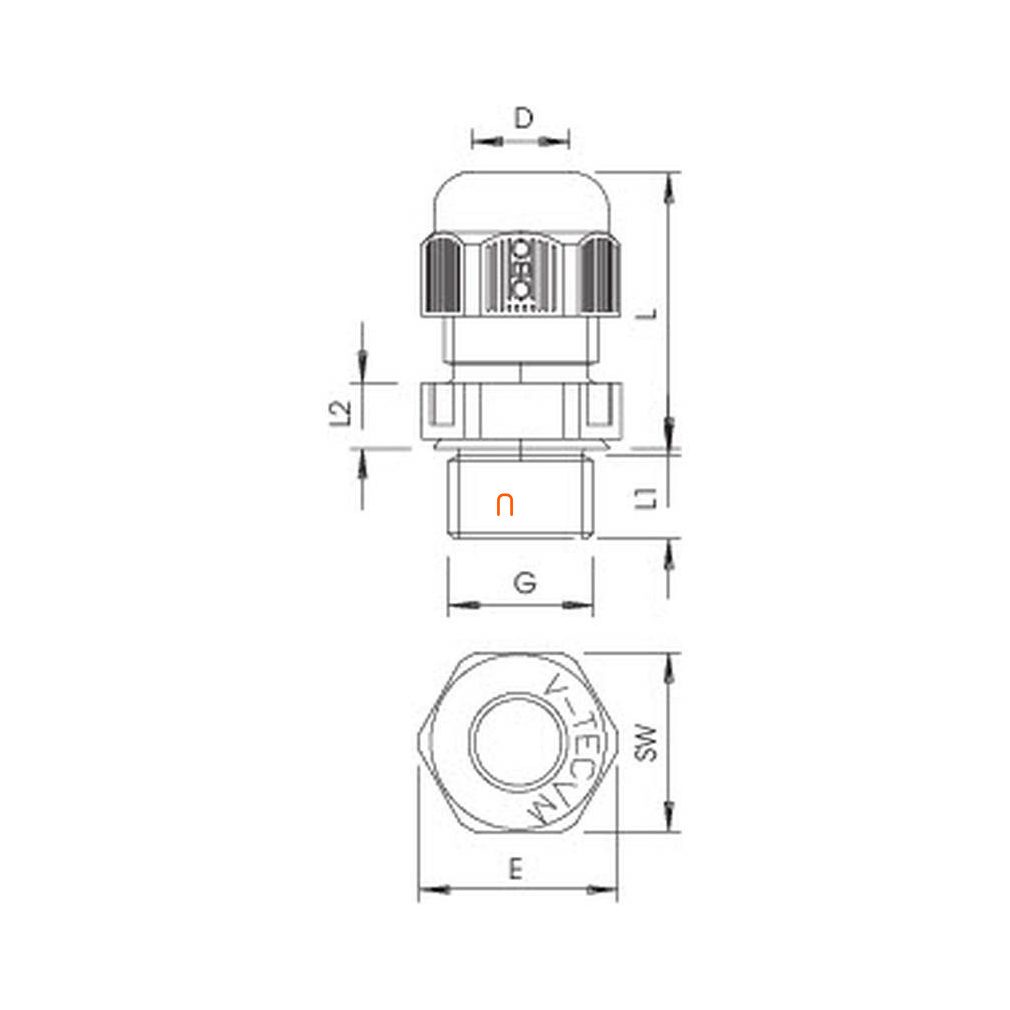 Presetupă metrică, filet extins M25, PA, gri deschis, 7035