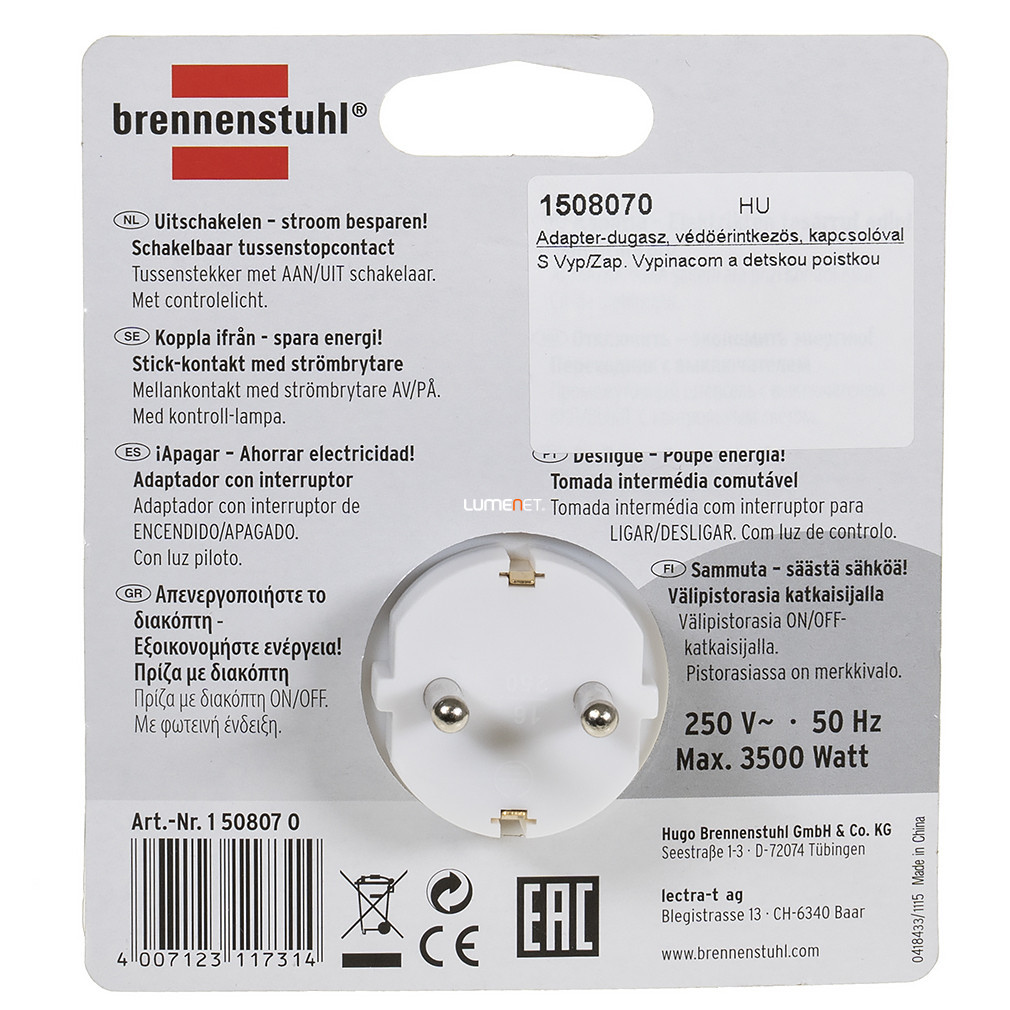 Priza cu împământare și întrerupător de lumină (max. 3500 W)