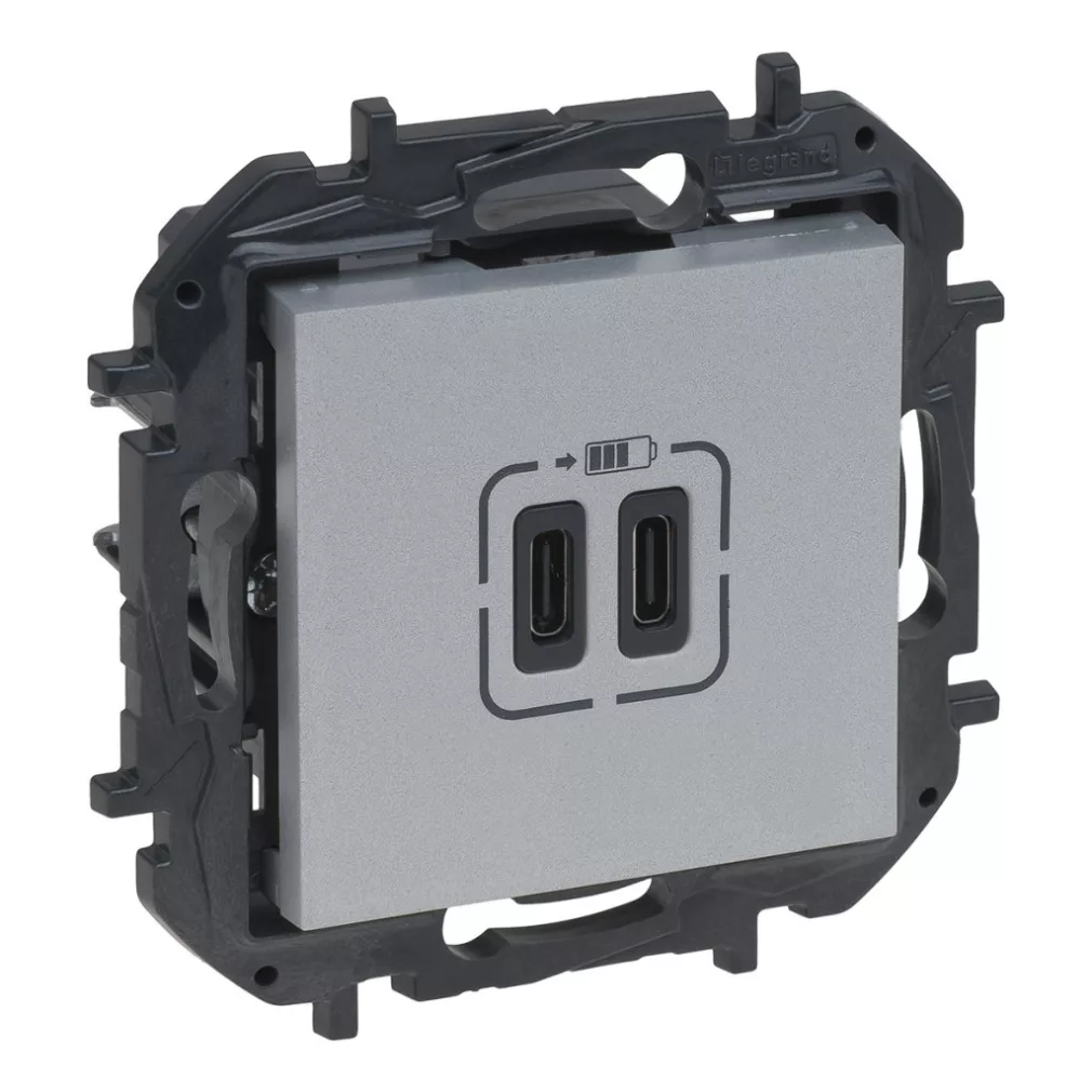 Niloé Step priză de încărcare din aluminiu 2xUSB-C 5V 3A 15W 863339B Legrand
