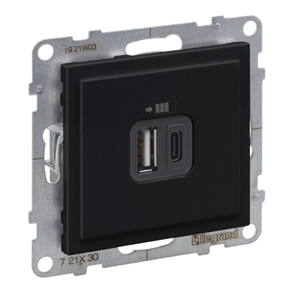 Priză de încărcare Legrand Suno 2xUSB-A+C, 3 A-15 W, negru - 721430