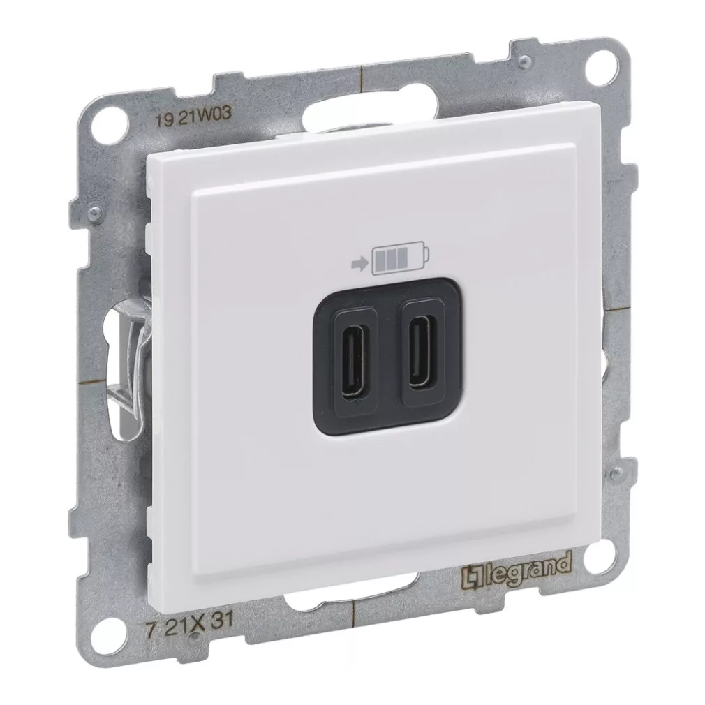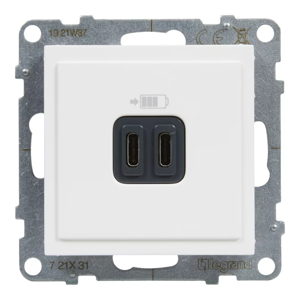 Priză Suno albă 2xUSB-C, 3 A - 15 W, fără cadru 721131 Legrand