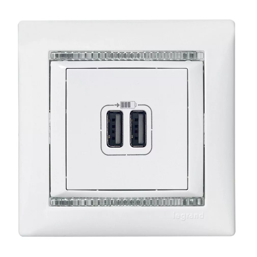 Priză de încărcare Legrand Valena 2xUSB, 1500 mA, albă - 770470