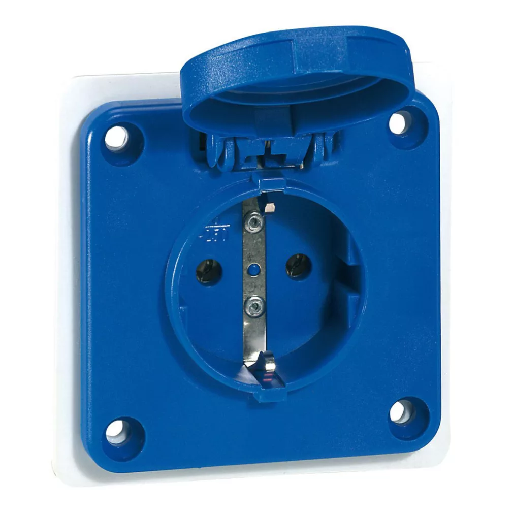 Priză domestică P17 Tempra, albastră IP44 cu cadru de montare standard