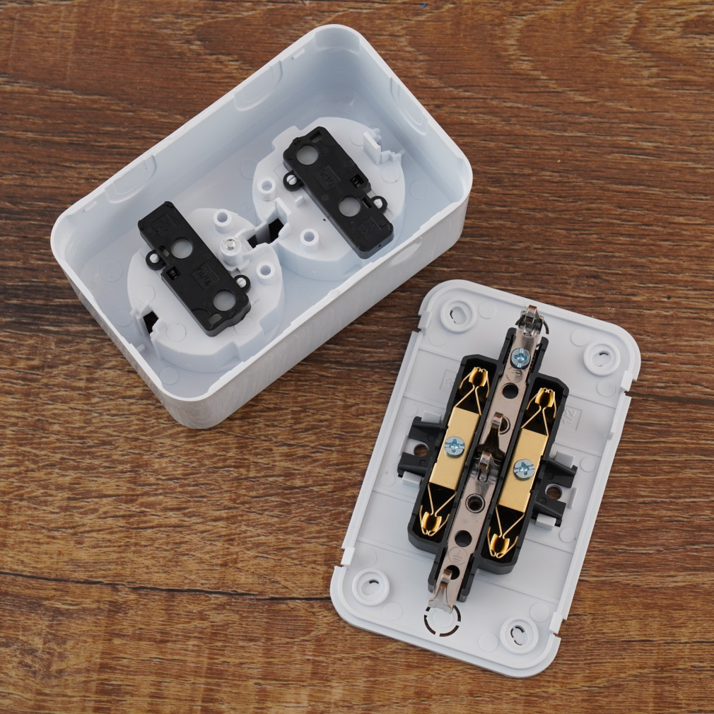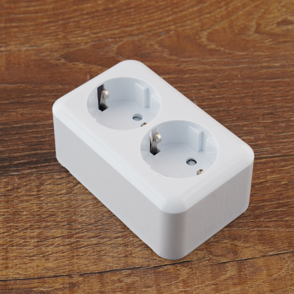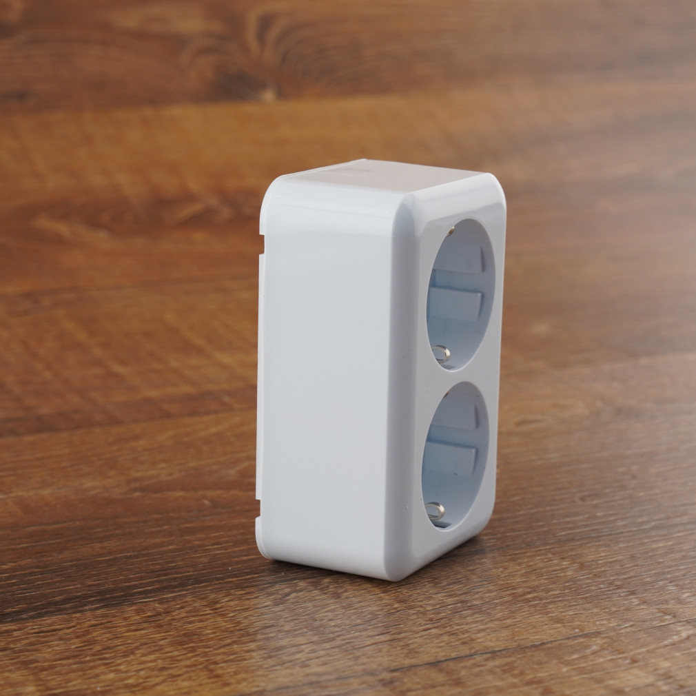 STILO FORTE 2x2P+F Schuk priză dublă cu împământare, montată pe perete, albă, cu protecție pentru copii STI281 SF-01-210