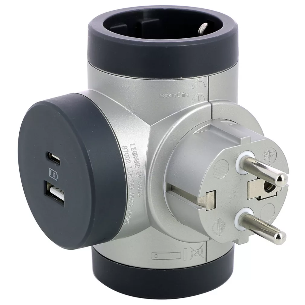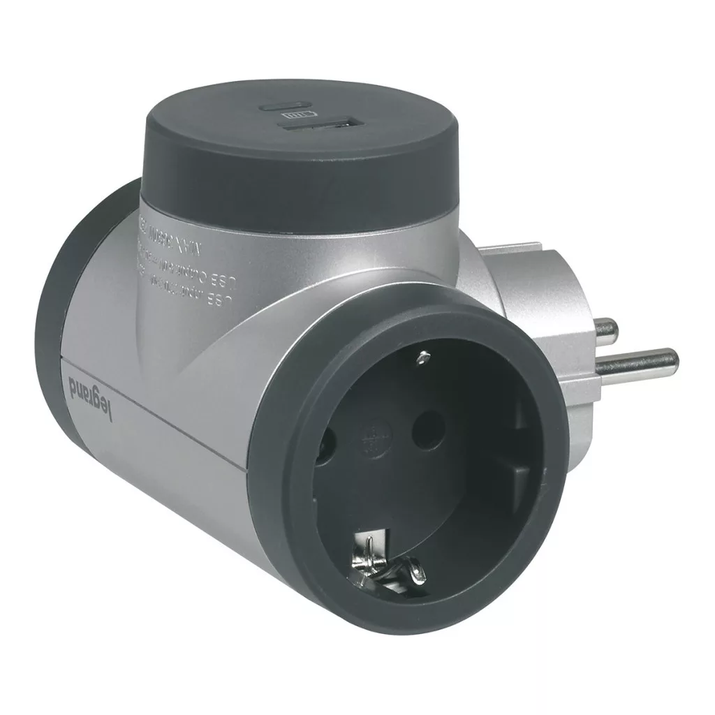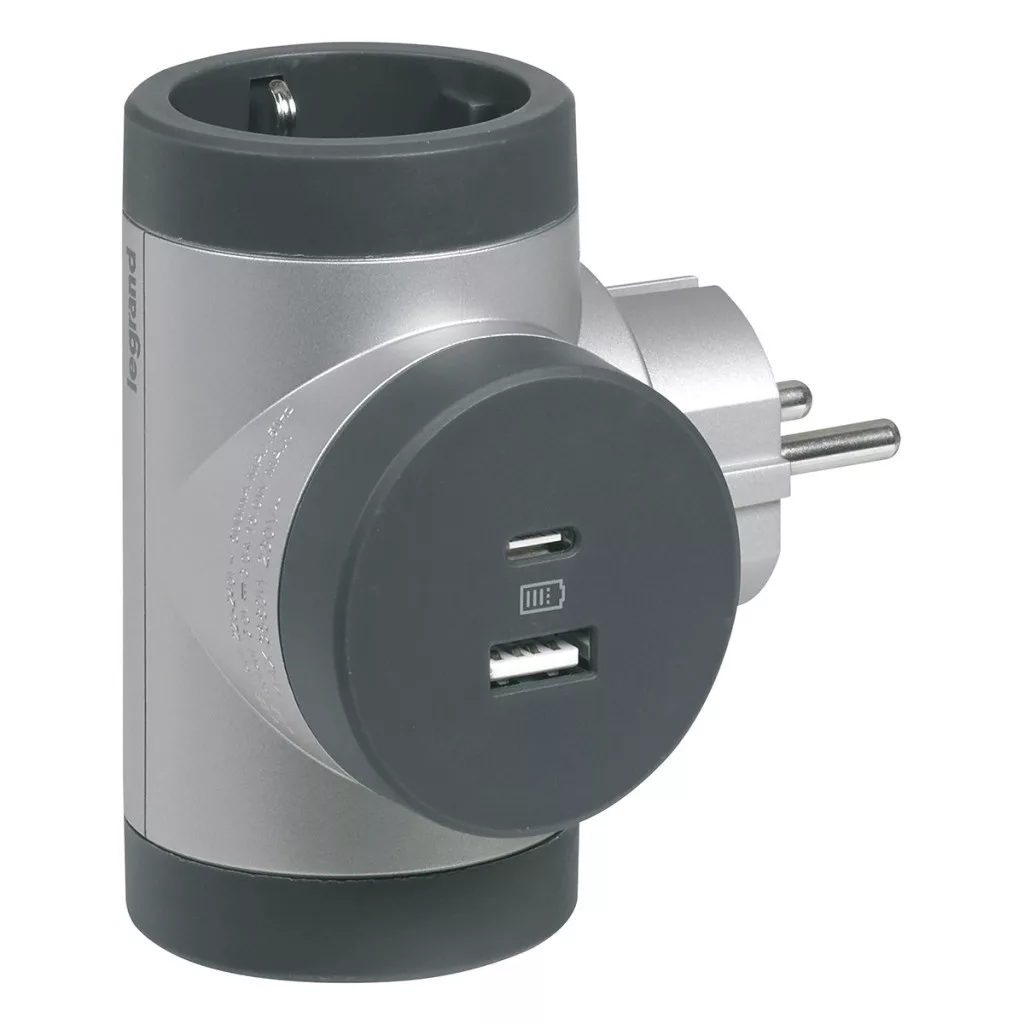 Priză de distribuție, 2 pini, priză cu împământare + USB-A + USB-C 694524 Legrand aluminiu