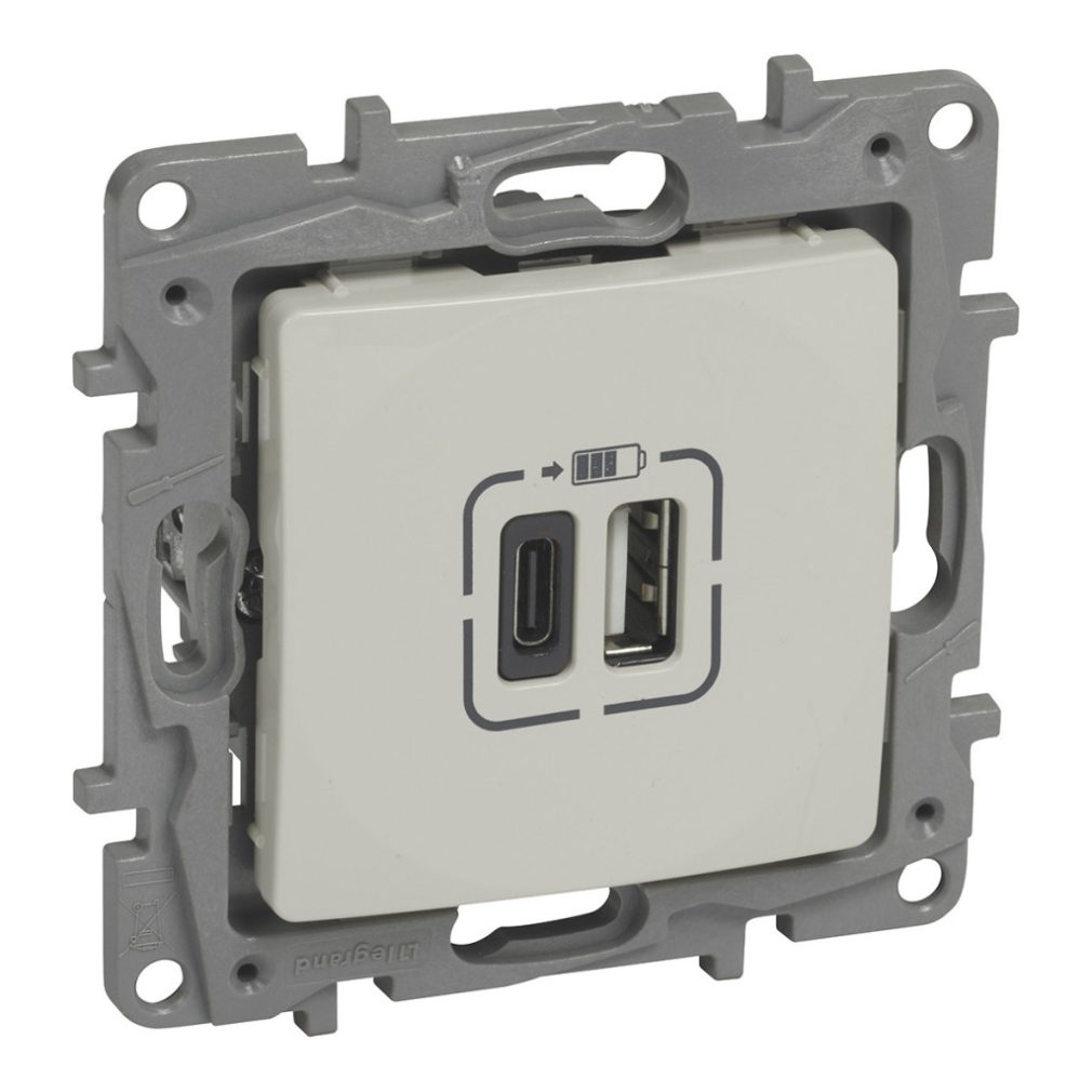 Priză dublă de încărcare USB-A+C Legrand Niloé - 3 A - 15 W, bej - 764697