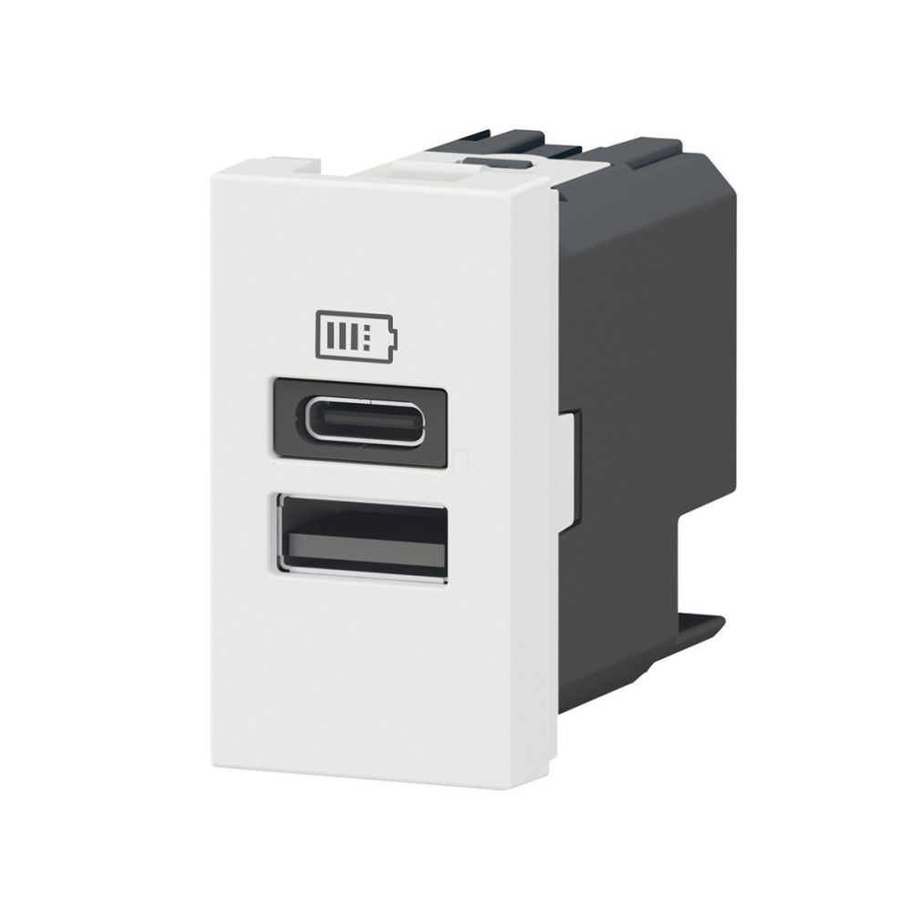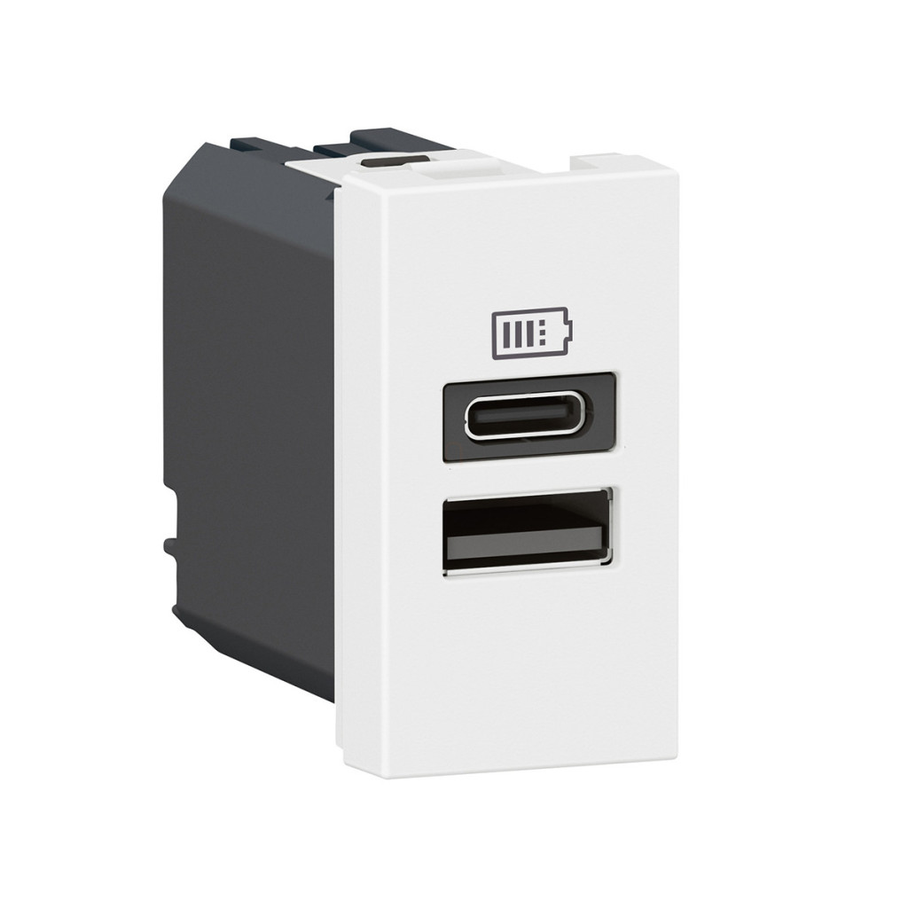 Priză dublă de încărcare USB-A și USB-C LeGrand Program Mosaic - 3 A - 15 W, 1 modul, alb - 077670L
