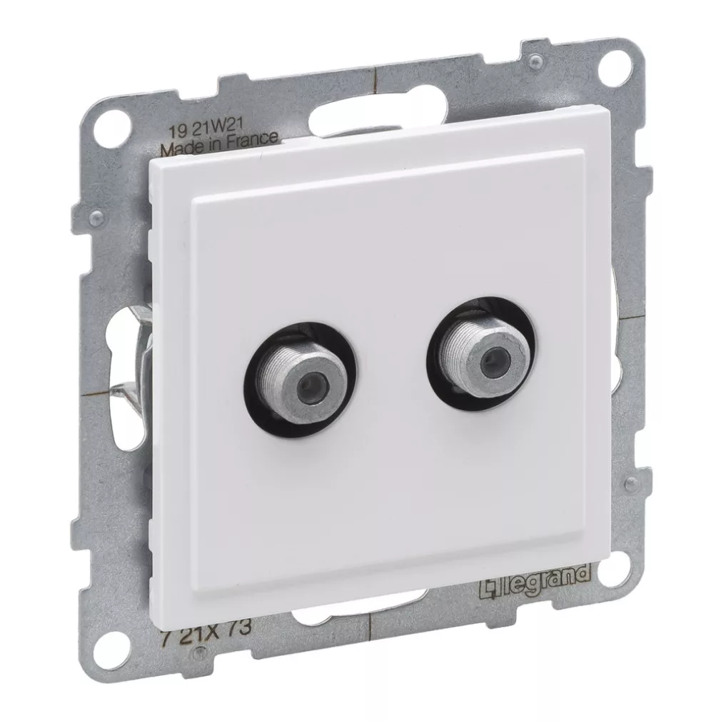 Priză dublă TV Legrand Suno, tip „F”, capac de închidere, alb - 721173