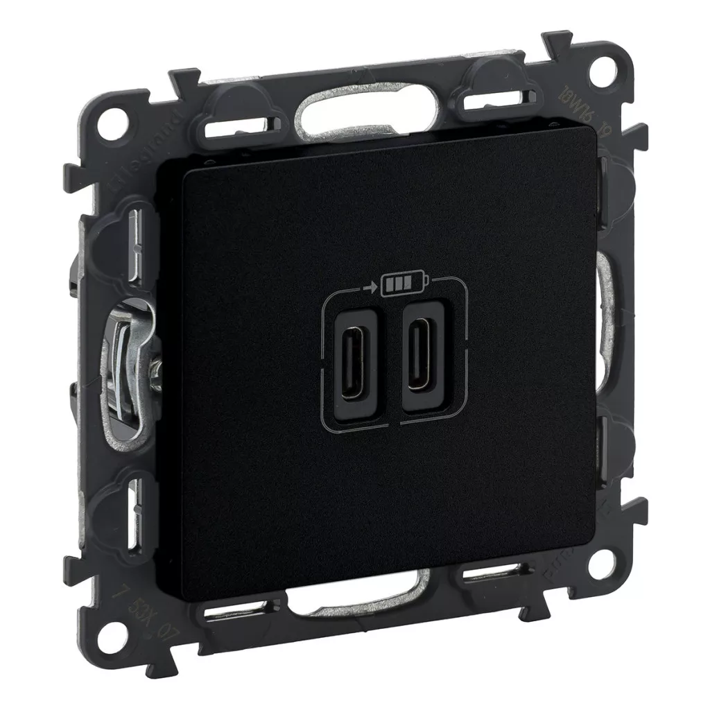Priză dublă USB-C + USB-C Legrand Valena Life 3A–15W, negru - 756307