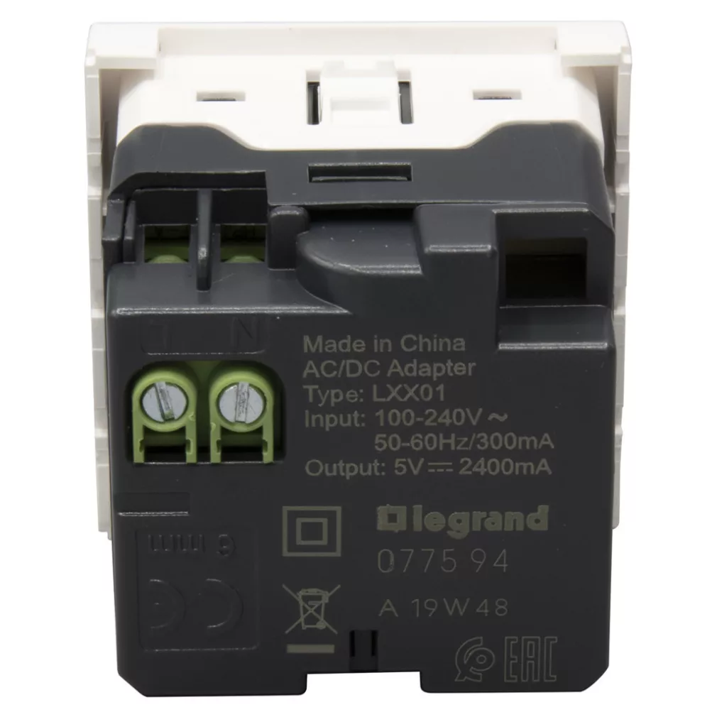 Leg. 077594 Program Mosaic priză dublă USB, 2400 mA, 2 module, alb