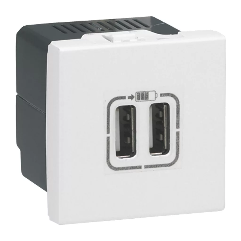 Priză dublă USB Legrand Program Mosaic, 2400 mA, 2 module, albă - 77594