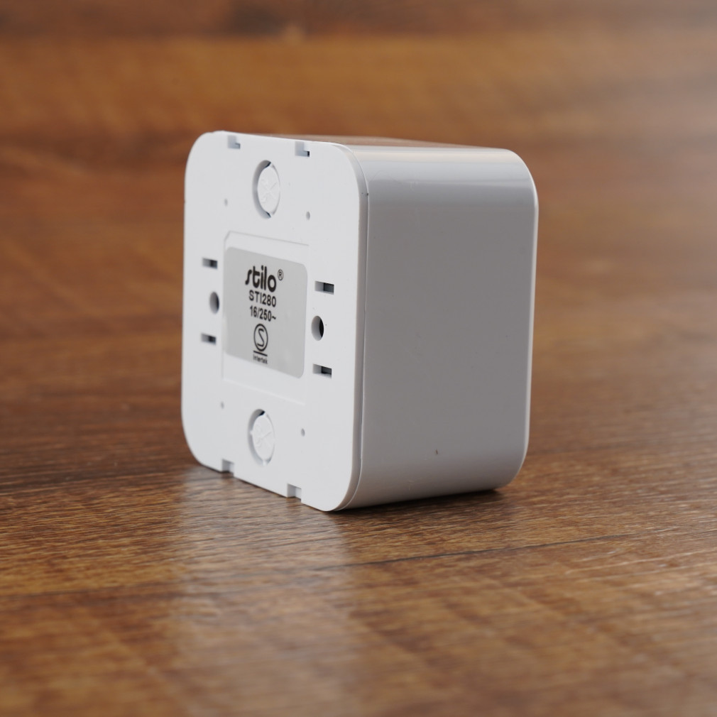 Priză externă cu împământare Stilo Forte 2P+F Schuko albă, cu obturator de siguranță - STI280