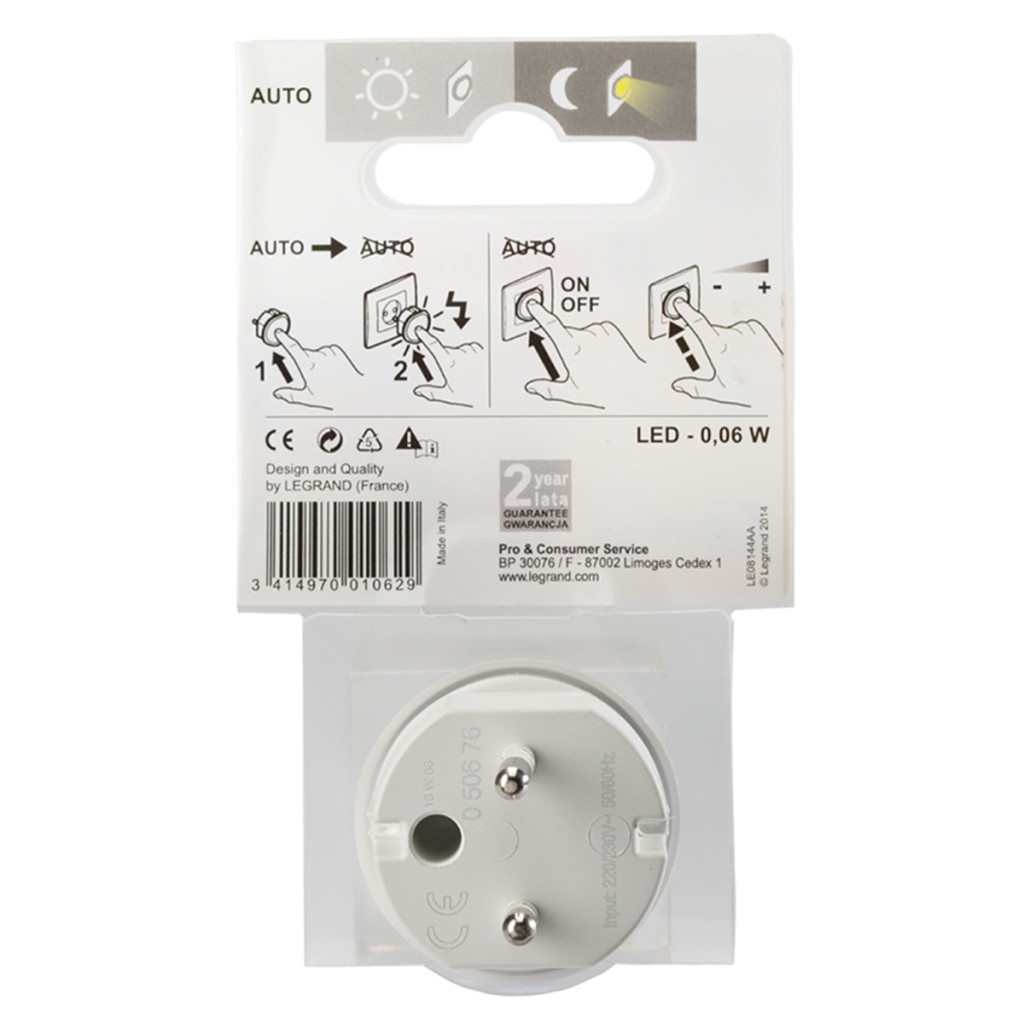 Leg.050676 Lampa de veghe cu priză, LED, comutabilă și cu intensitate reglabilă, albă