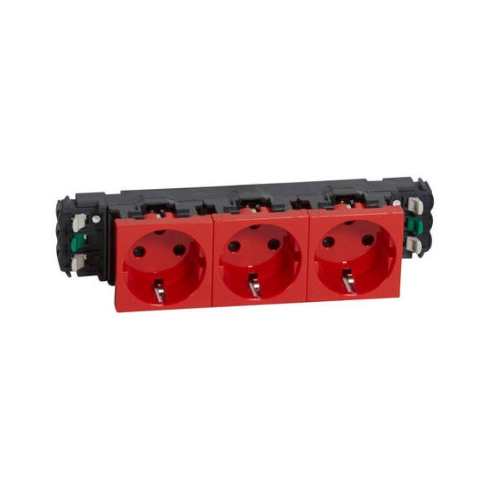 Priză Legrand Mosaic 3x2P+F, blocată, cu flanșă, cu arc, roșie - 77282