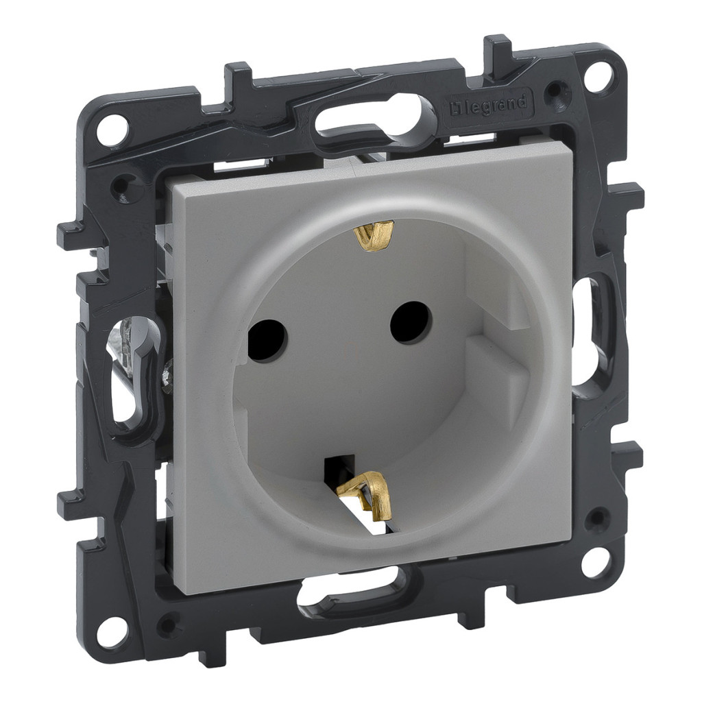 Priză Legrand Niloé Step 2P+F (cu arc), cu obturator de siguranță, aluminiu - 863320