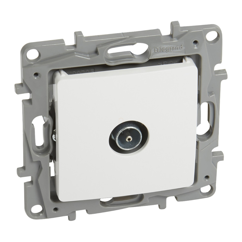 Priză TV albă Niloé 764551, 9,5 (masculină) 1dB punct stelă Legrand Priză TV punct stelă Niloé, 9,5 (masculină), capac de închidere (1 dB), albă