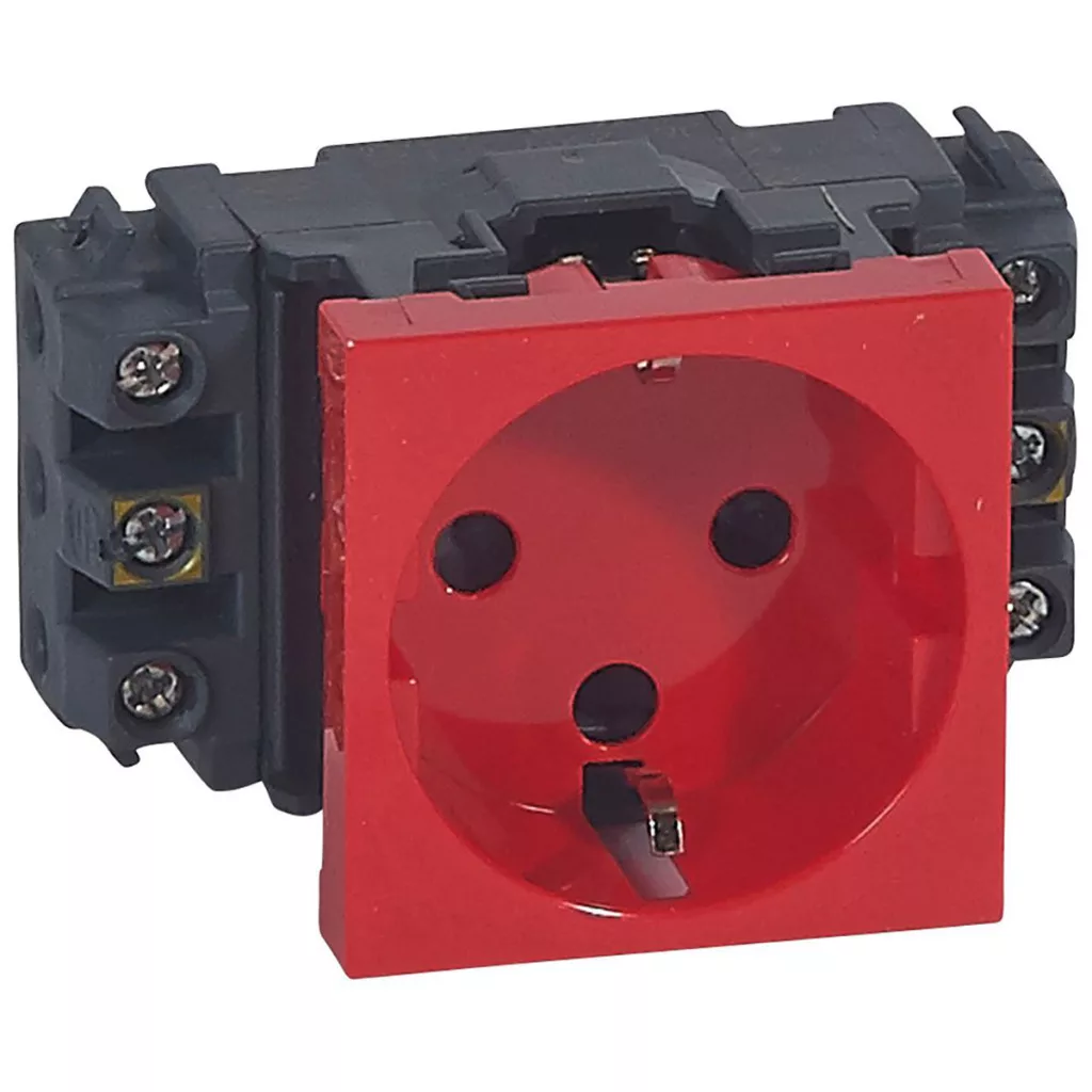 Priză LeGrand Program Mosaic 1x2P+F DLP, blocată, cu flanșă, montată cu șuruburi, roșie - 77621