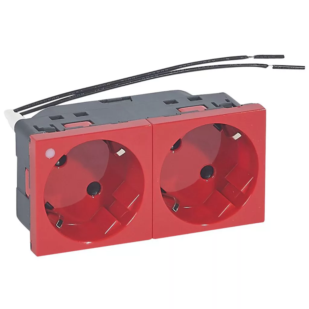 Priză LeGrand Program Mosaic 2x2P+F cu lumină direcțională, cu fante, cu arc, roșie - 77291