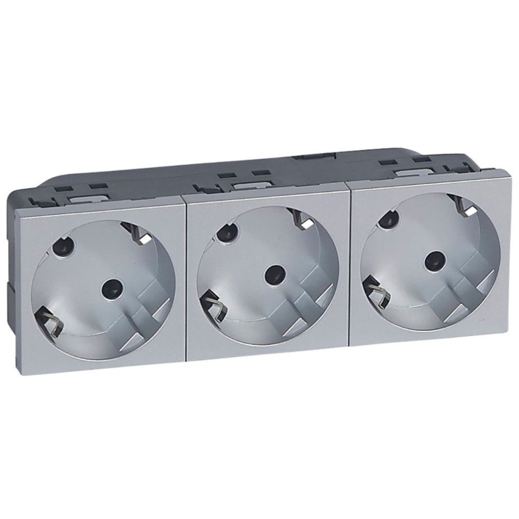 Priză Legrand Program Mosaic 3x2P+F, cu flanșă, cu arc, din aluminiu - 79283
