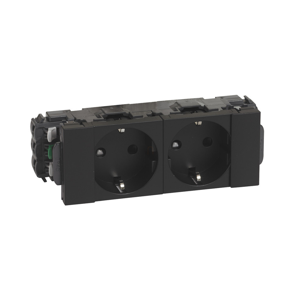 Leg.077232L DLP-S snap-in. Priza Mosaic 2x2P+F, sinterizată, cu Soluclip, negru
