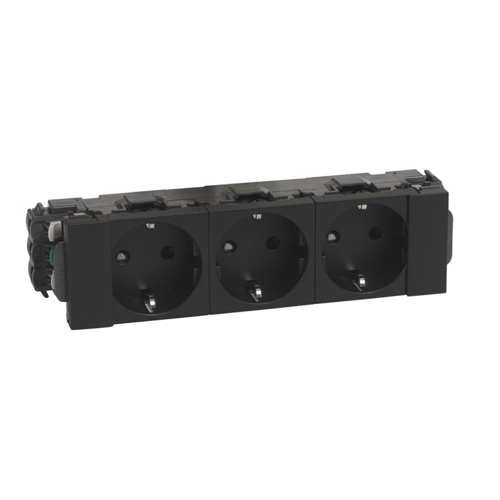 Leg.077233L DLP-S snap-in. Priză Mosaic 3x2P+F, teșită, cu Soluclip, negru mat