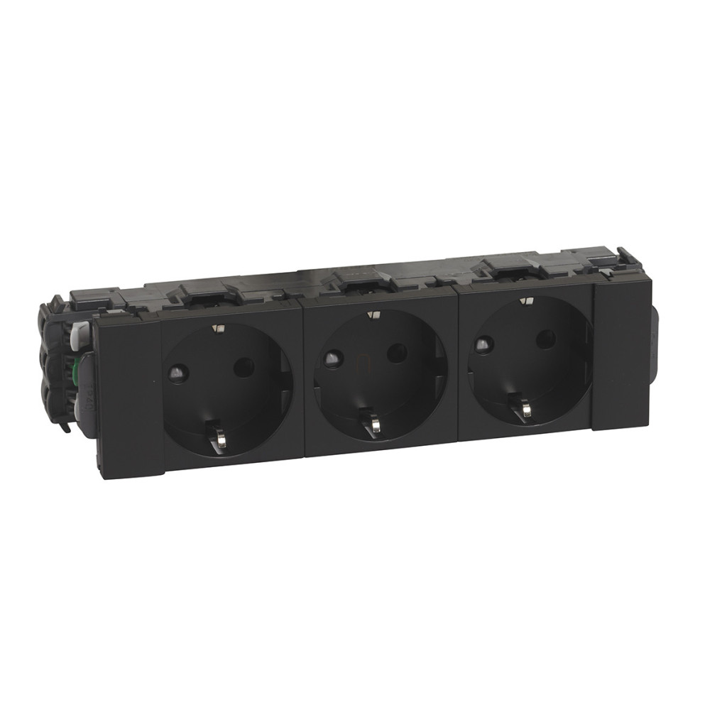 Priză Legrand Program Mosaic DLP-S snap-in 3x2P+F, teșită, cu Soluclip, negru mat - 077233L