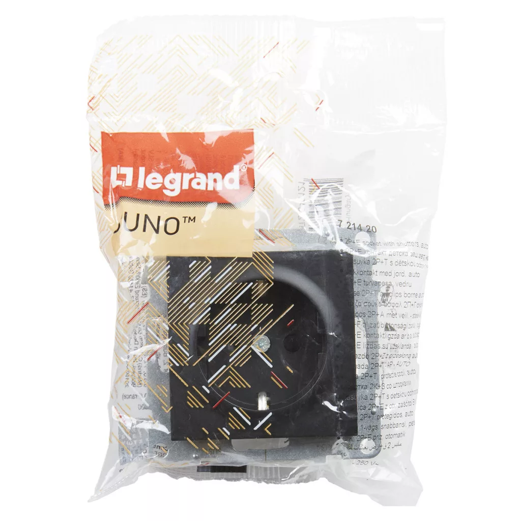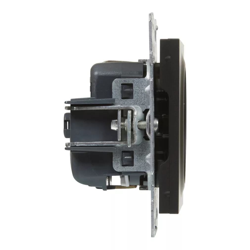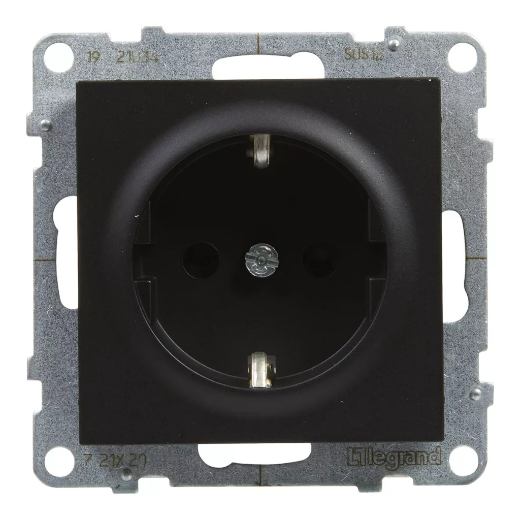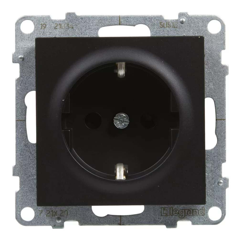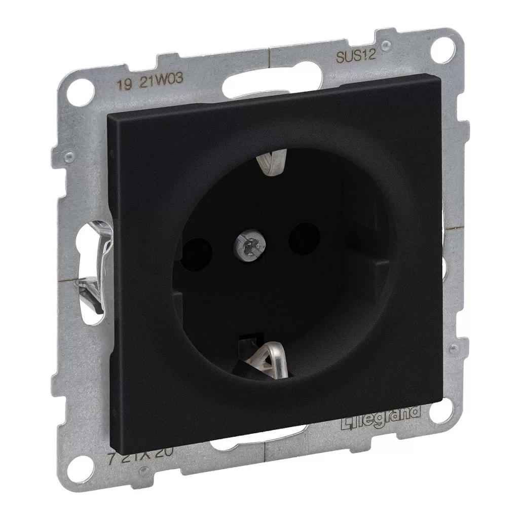 Priză Suno neagră 2P+E GYV (cu arc), cu obturator de siguranță, fără ramă 721420 Legrand