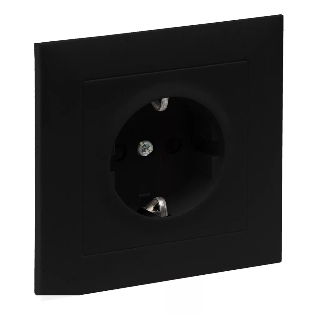 Priză Suno neagră 2P+E GYV (cu arc), cu obturator de siguranță, cu ramă 721428 Legrand