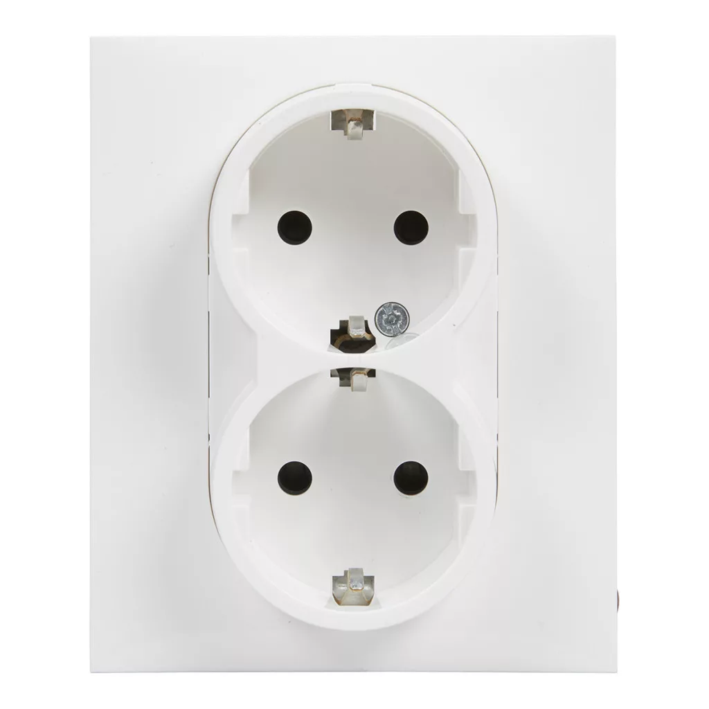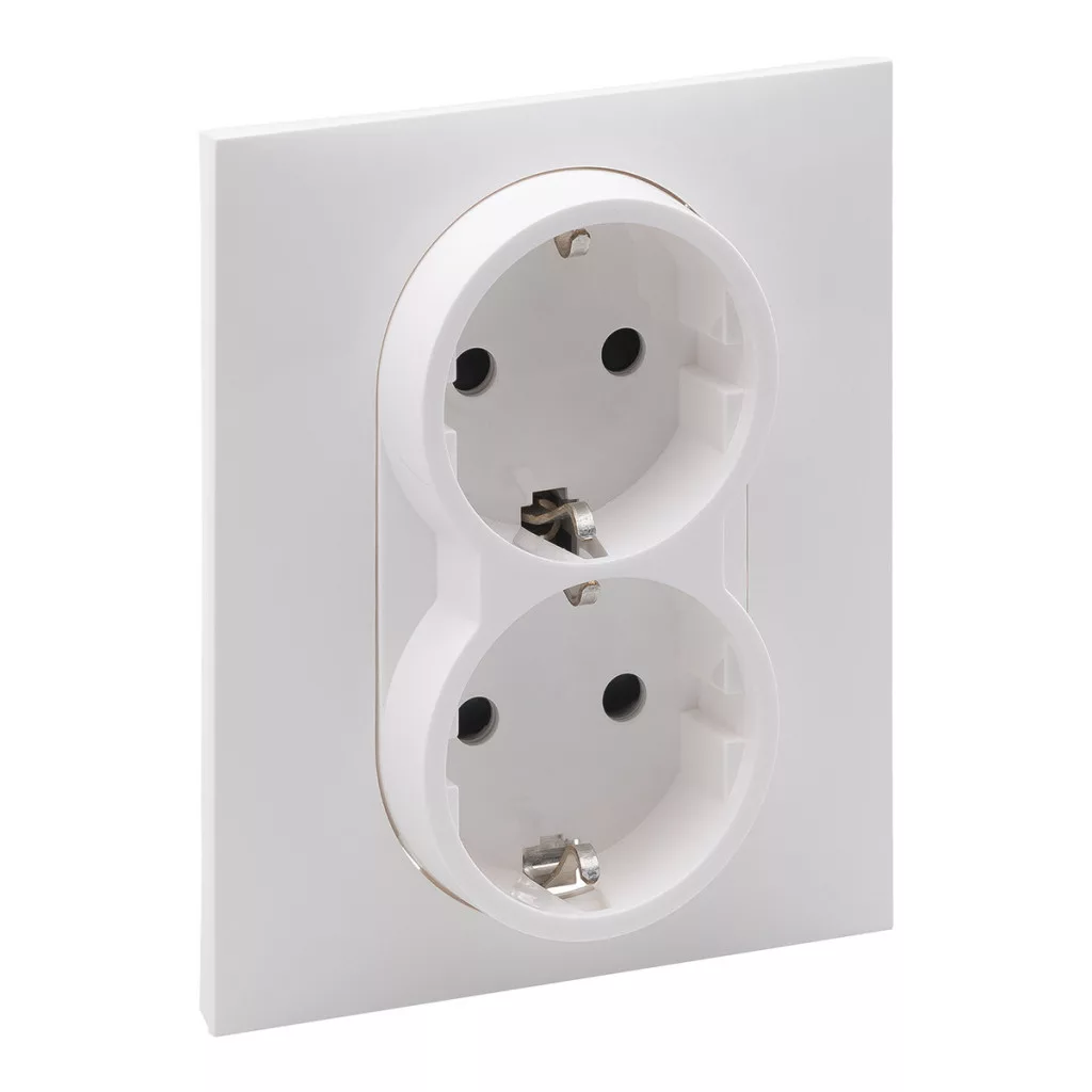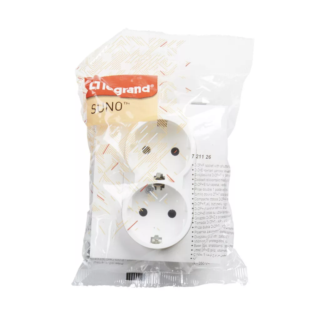 Priză Suno albă 2x2P+F GYV (cu arc), cu obturator de siguranță, completă 721126 Legrand
