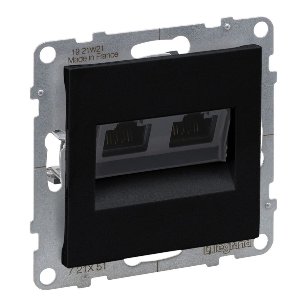 Priză Suno neagră 2xRJ45 UTP Cat.5E, fără cadru 721451 Legrand
