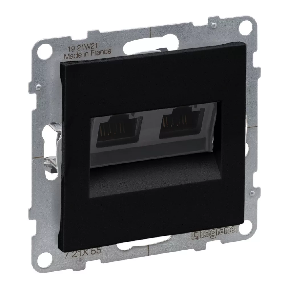 Priză Suno neagră 2xRJ45 UTP Cat.6A, fără cadru 721455 Legrand