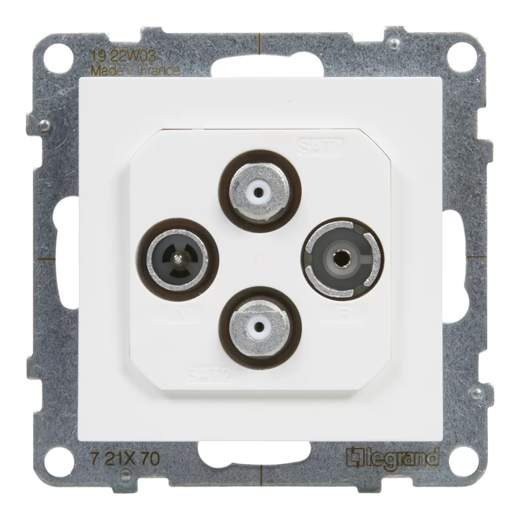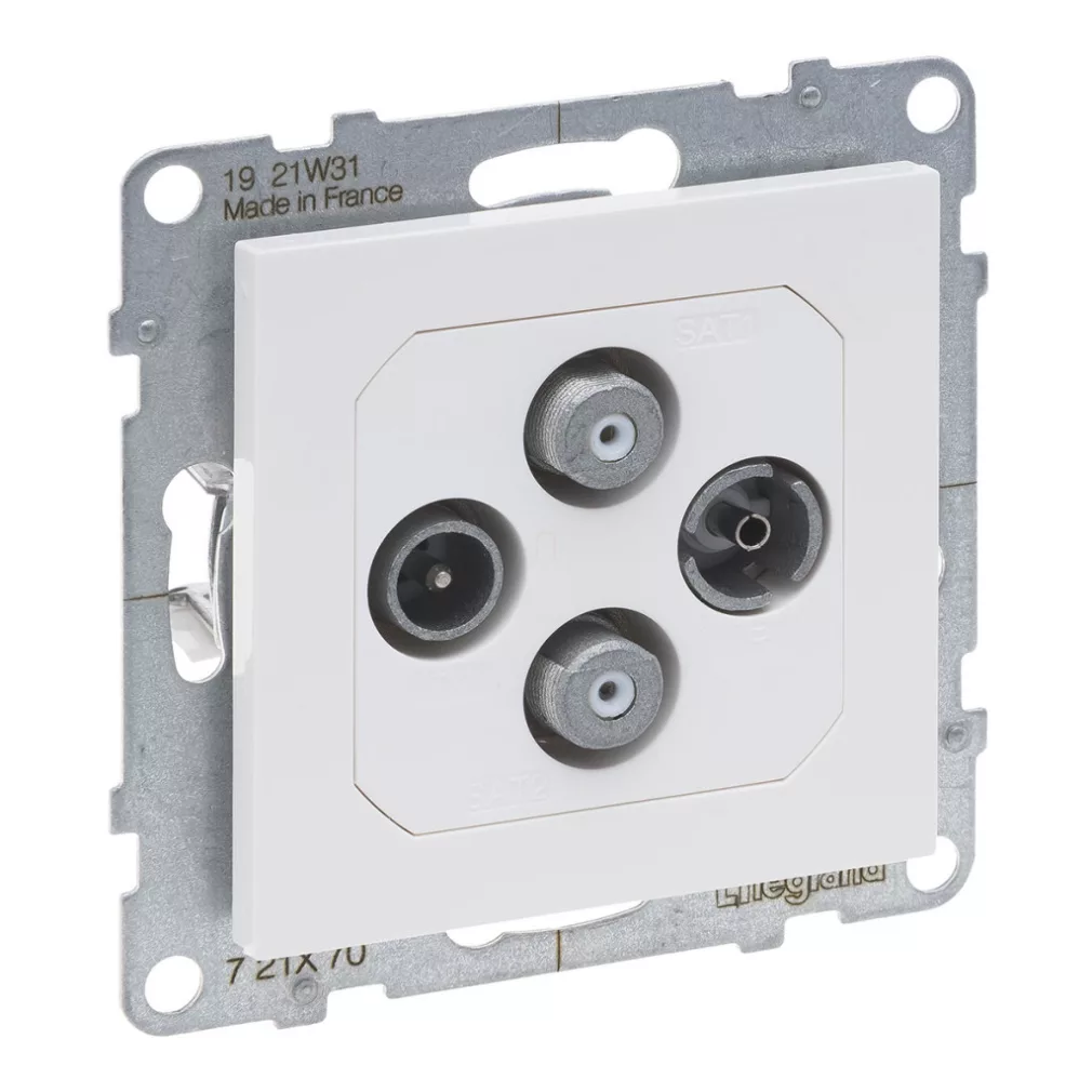 Priză Legrand Suno TV-R-SAT-SAT, în formă de stea, albă - 721170