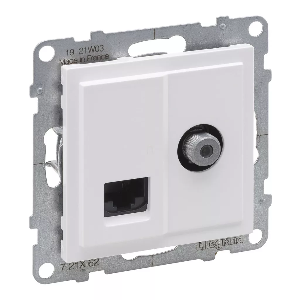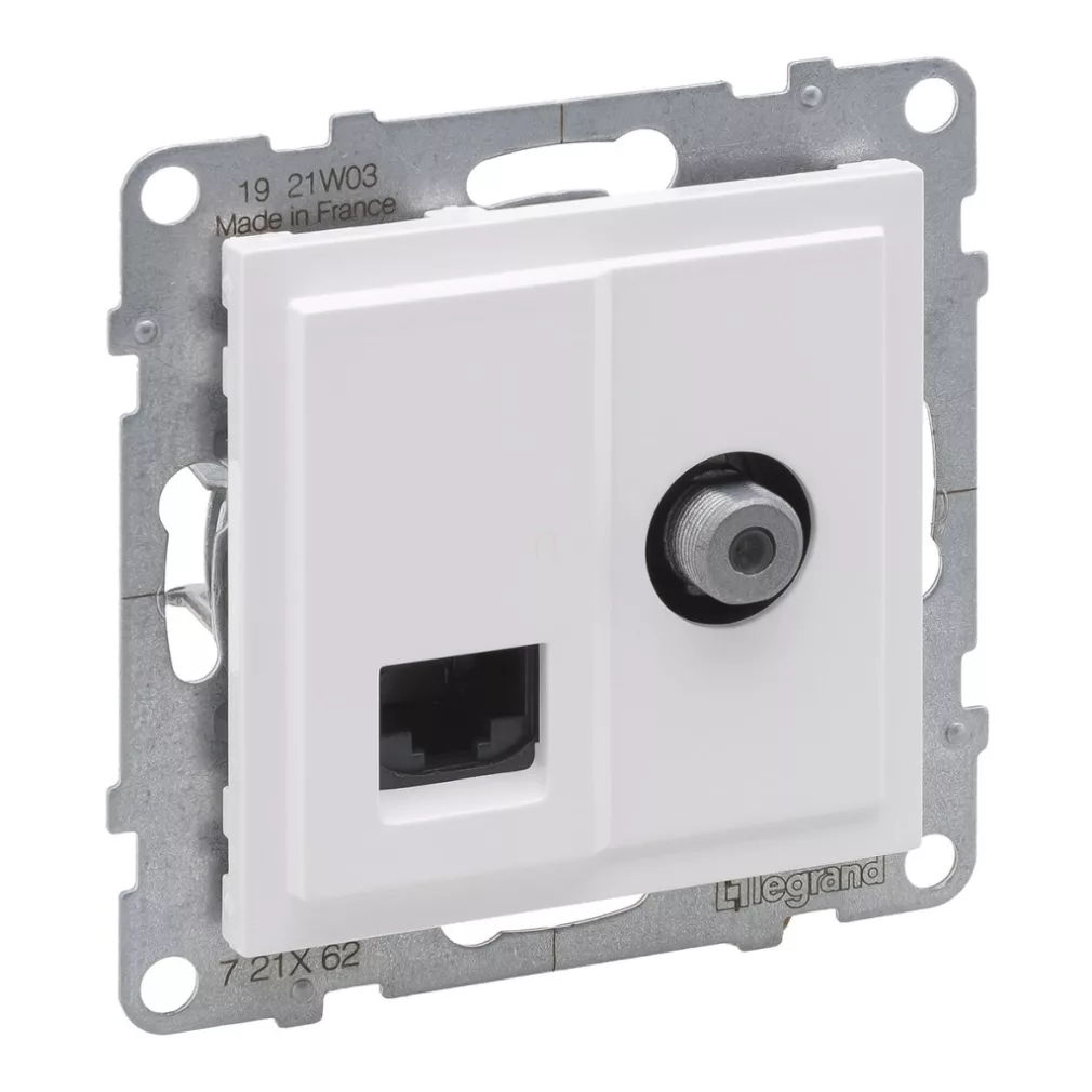 Priză Legrand Suno TV tip „F” + RJ45 Cat.6 UTP, albă - 721162