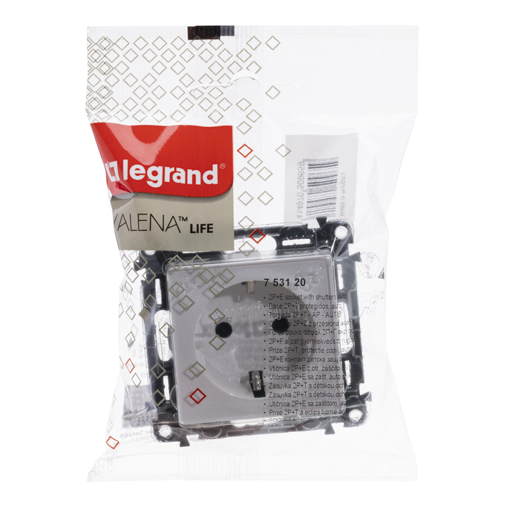 Priză de siguranță Valena Life 753120 2P+F (GYV), cu arc, albă Legrand