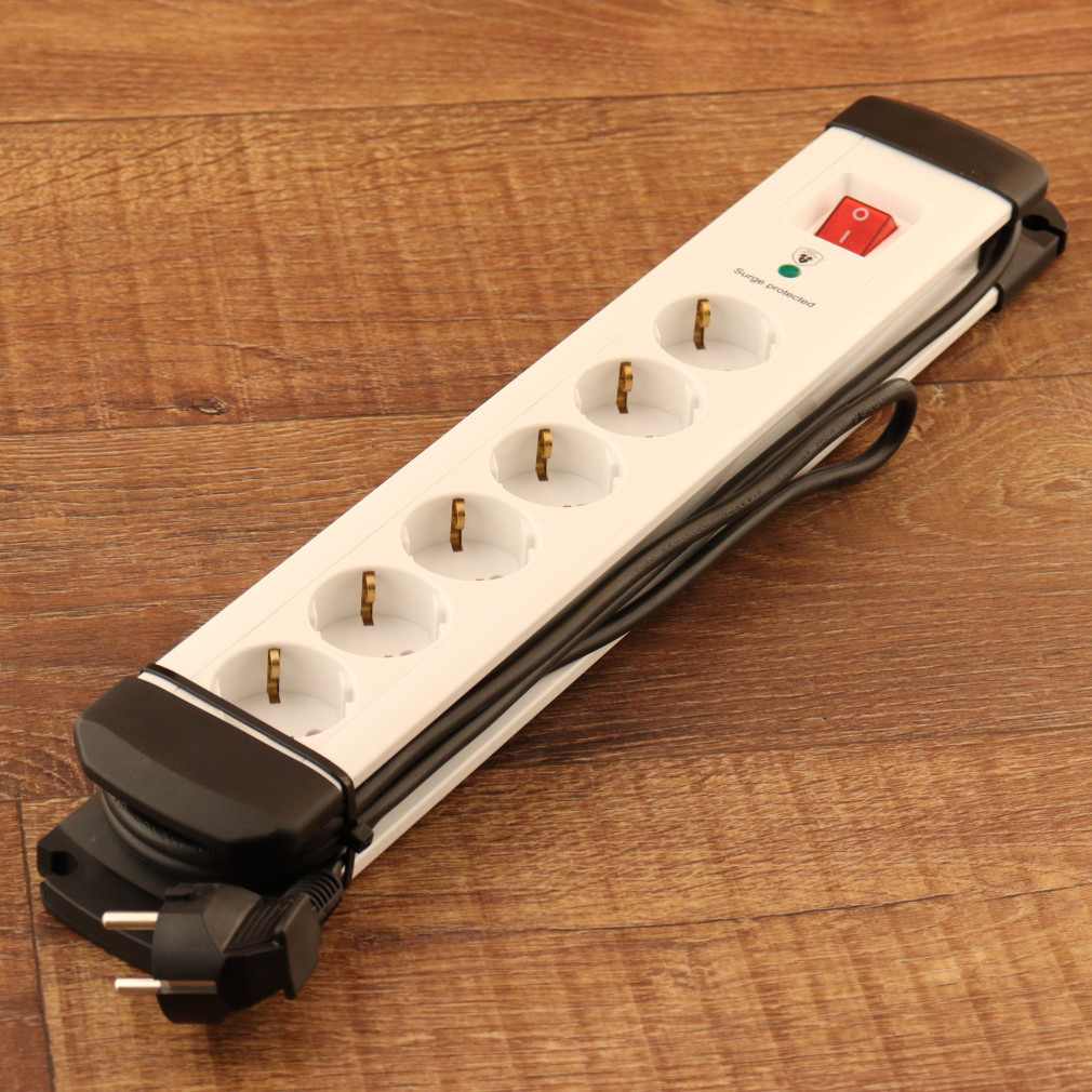Prelungitorul GAO 6 distribuitor de birou 3x1,0 mm² 2 m cablu 250 V 16 A IP20 este protejat împotriva supratensiunii și protejează consumatorii în caz de scurtcircuit. Distribuitorul poate fi montat și pe o suprafață.