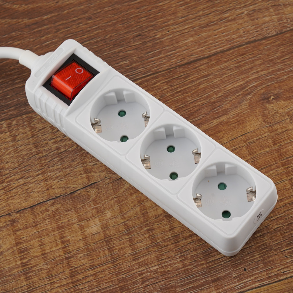 Priză multiplă Stilo cu 3 prize, cablu de 1,5 m, întrerupător, alb - STI766