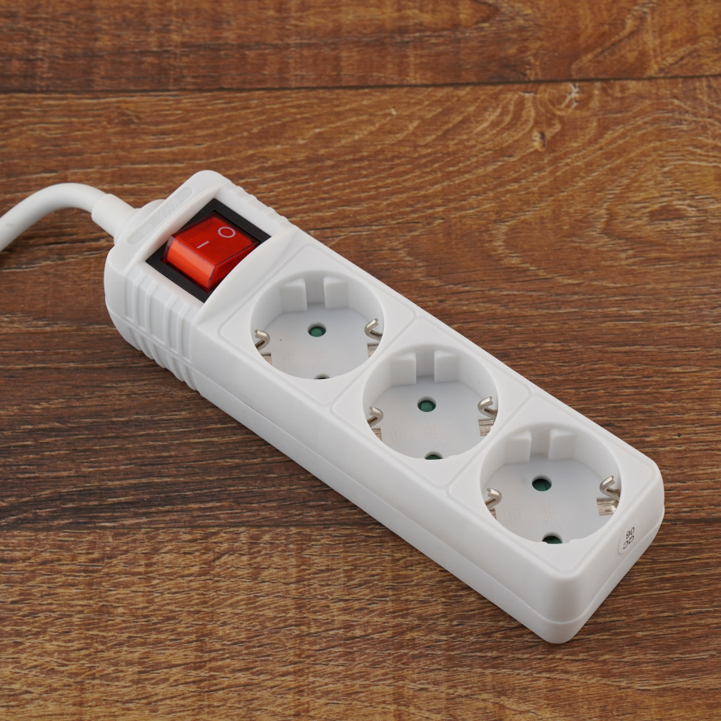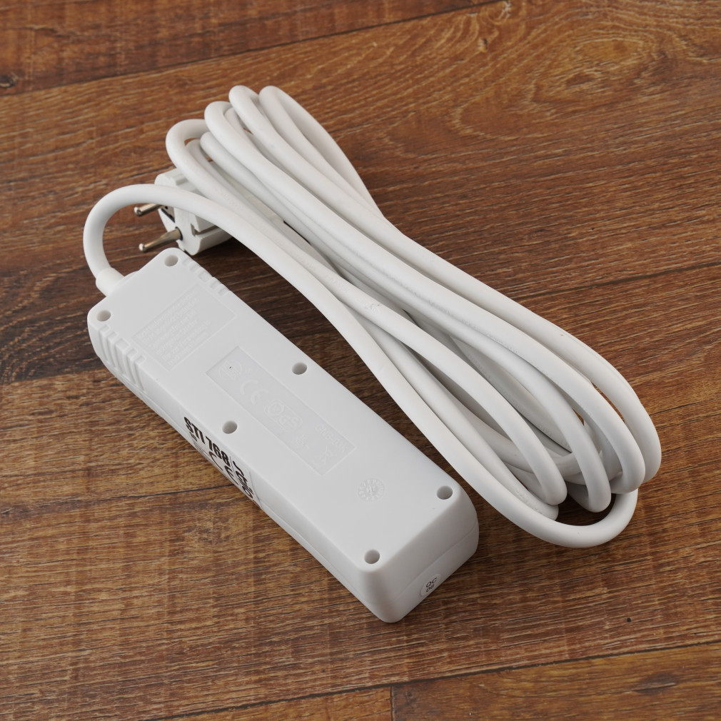 Priză multiplă cu 3 prize și cablu de 5 m, cu întrerupător (H05VV-F 3x1,5 mm2) alb Stilo STI768