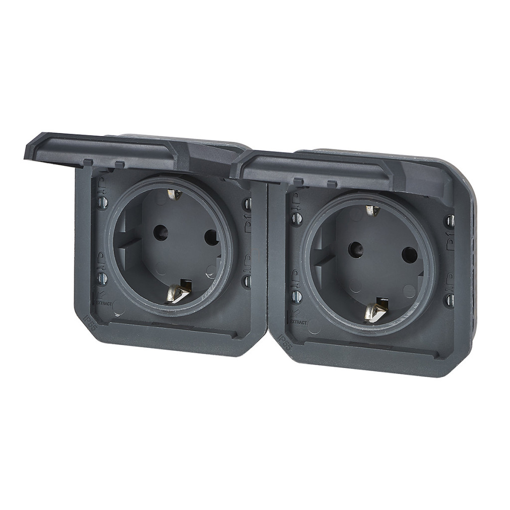 Plexo 55 2x2P+F priză orizontală pre-cablată cu capac cu fixare prin presare, antracit 069879L Legrand