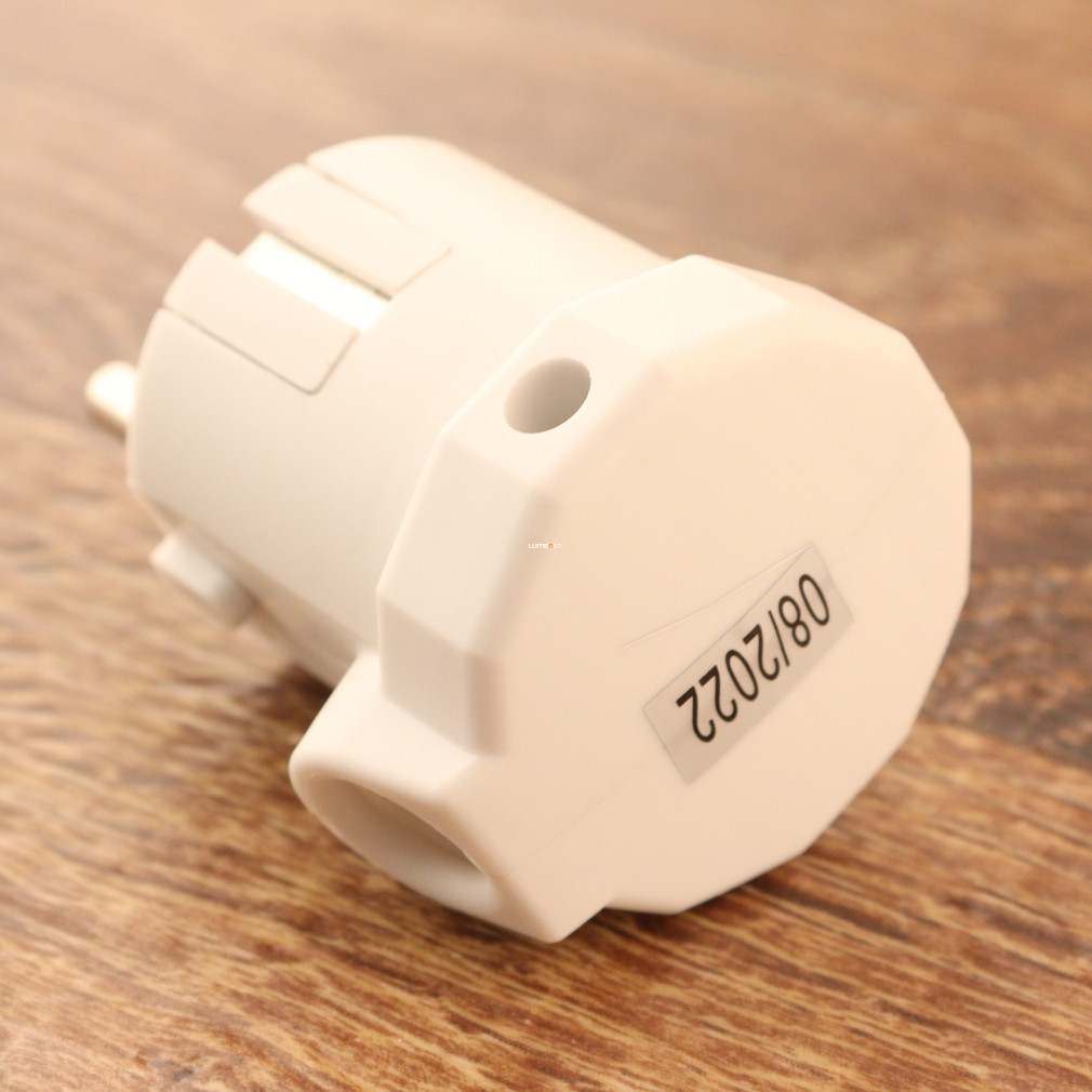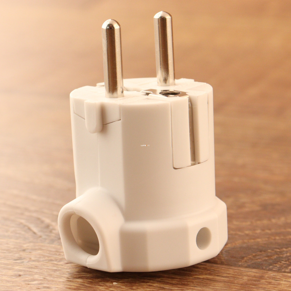 Ștecher pivotant cu împământare GAO cu priză laterală, 250V IP20 16A. Recomandat pentru spații mai înguste în spatele unui dulap, priza laterală ocupă mai puțin spațiu, evitând ruperea cablurilor.