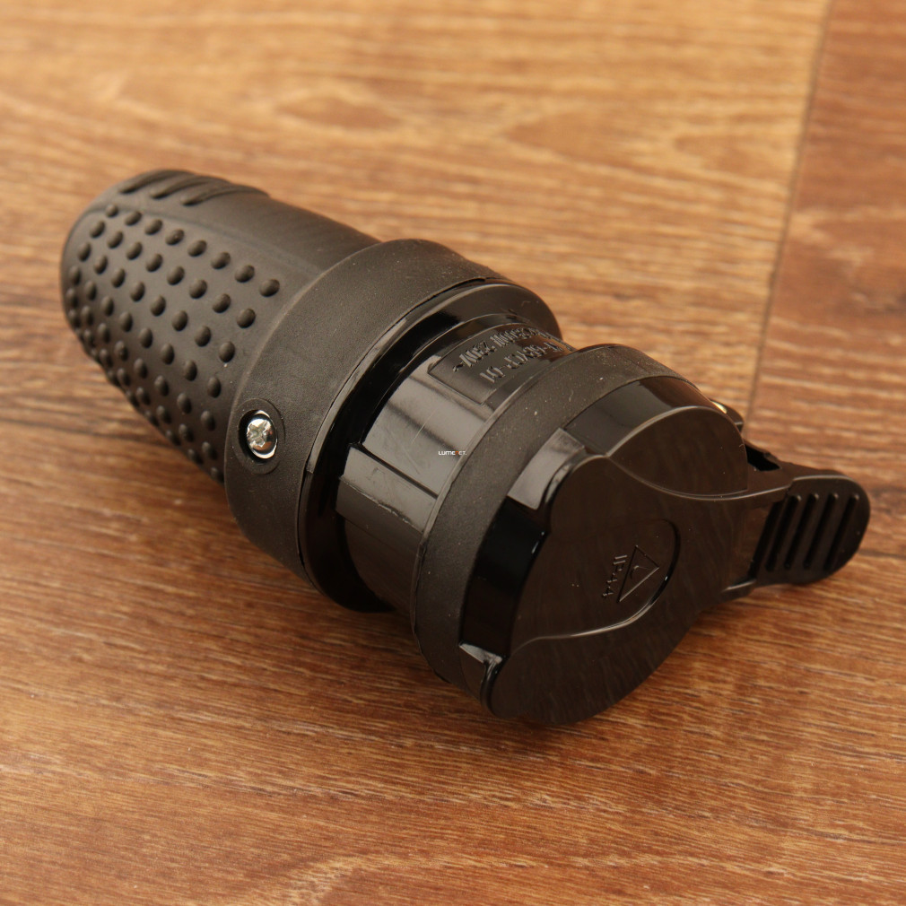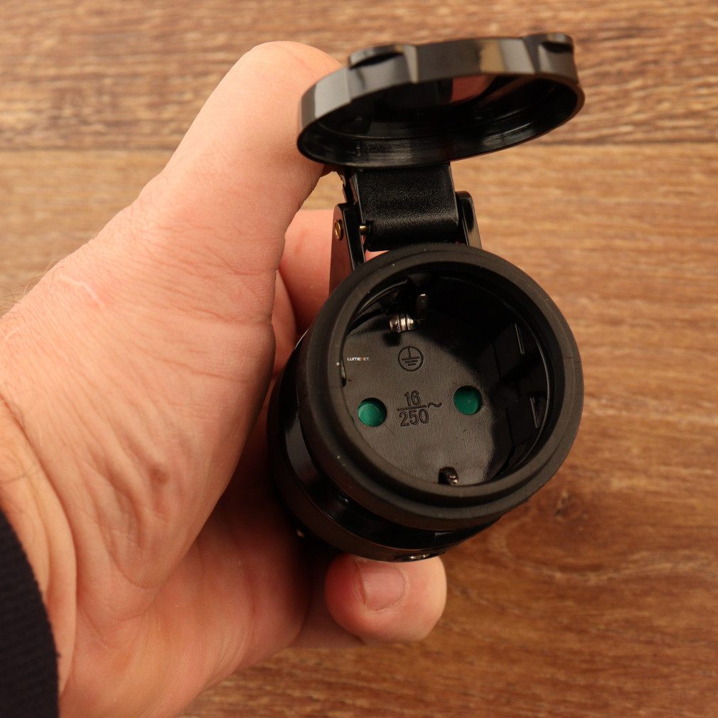 Priză pivotantă, cu împământare, cu capac, negru (16A)