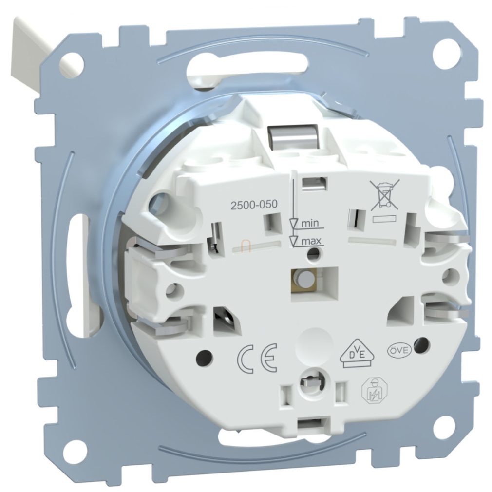 Priză Schneider Merten 2P+F, cu obturator de siguranță, capac cu fixare prin presare, cu arc, 16 A, System-M, alb polar MEG2310-0319