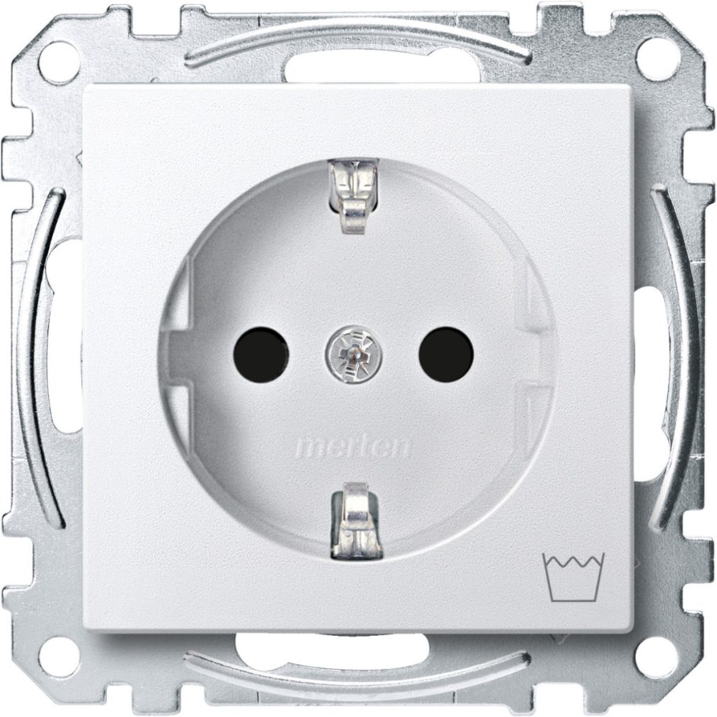 Priză MERTEN 2P+F, cu obturator de siguranță, simbol mașină de spălat, cu arc, 16A, Sistem-M, alb mat MEG2352-0419 Schneider